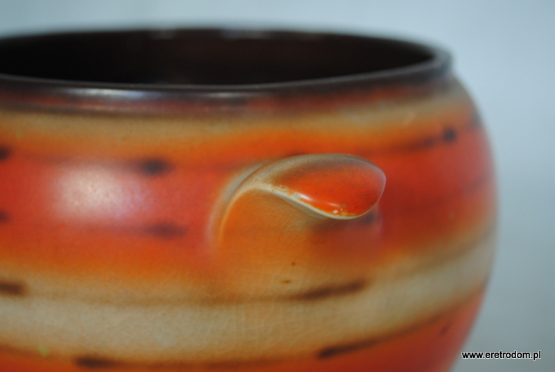 Osłonka na doniczkę wykonana z ceramiki. Od spodu sygnatura producenta.