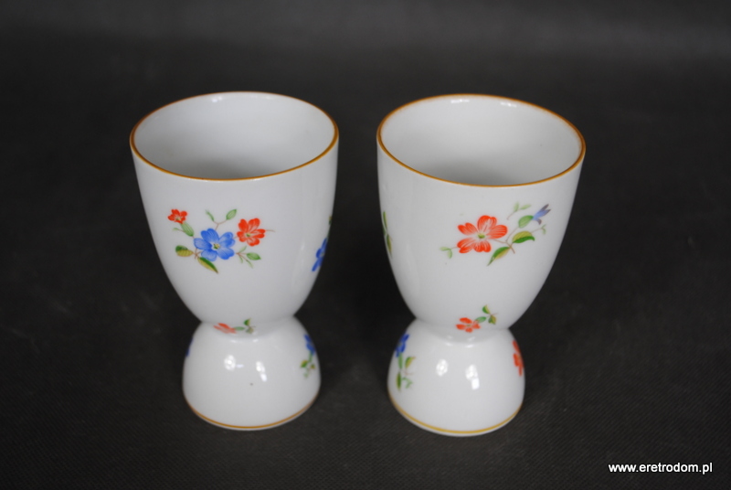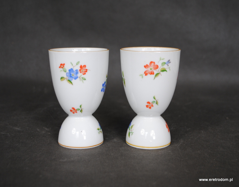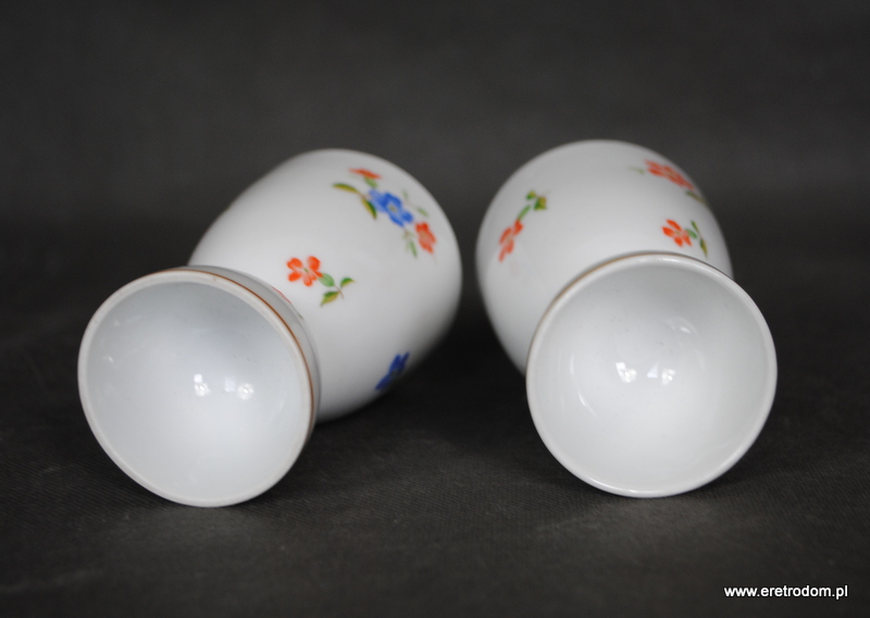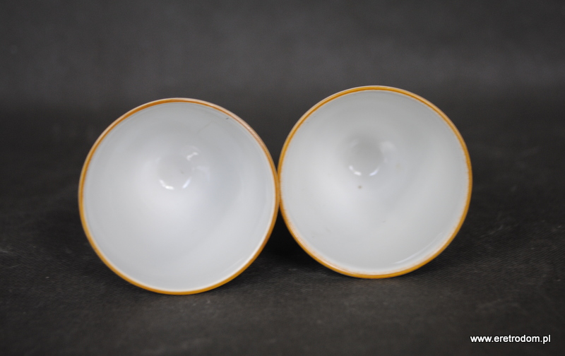 Para świeczników które po odwróceniu mogą być także wazonami. Wykonane w I poł XXw z delikatnej białej porcelany. Ozdobione kwiatową kalką.