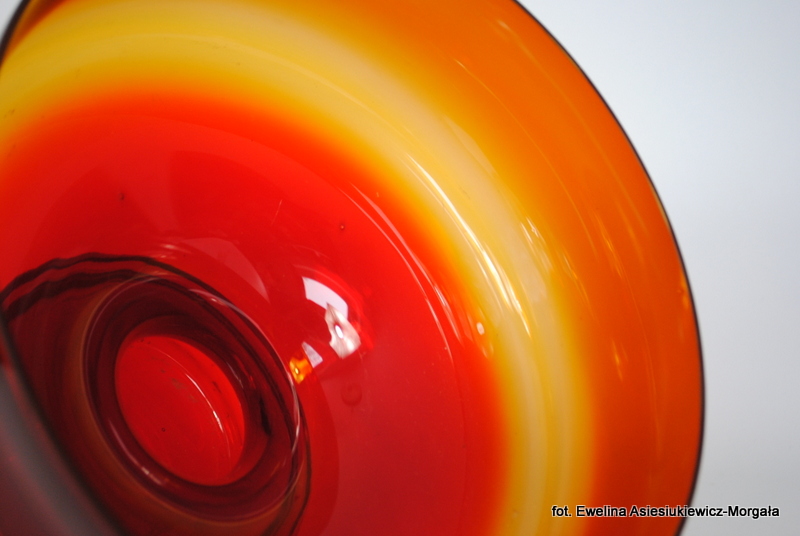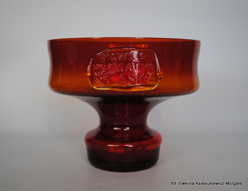 Patera, owocarka wyprodukowana w jednej z polskich hut w II poł. XXw. Szkło sodowe, ręcznie formowane. Posiada klips z napisem „KWK XV lat Śląsk”.