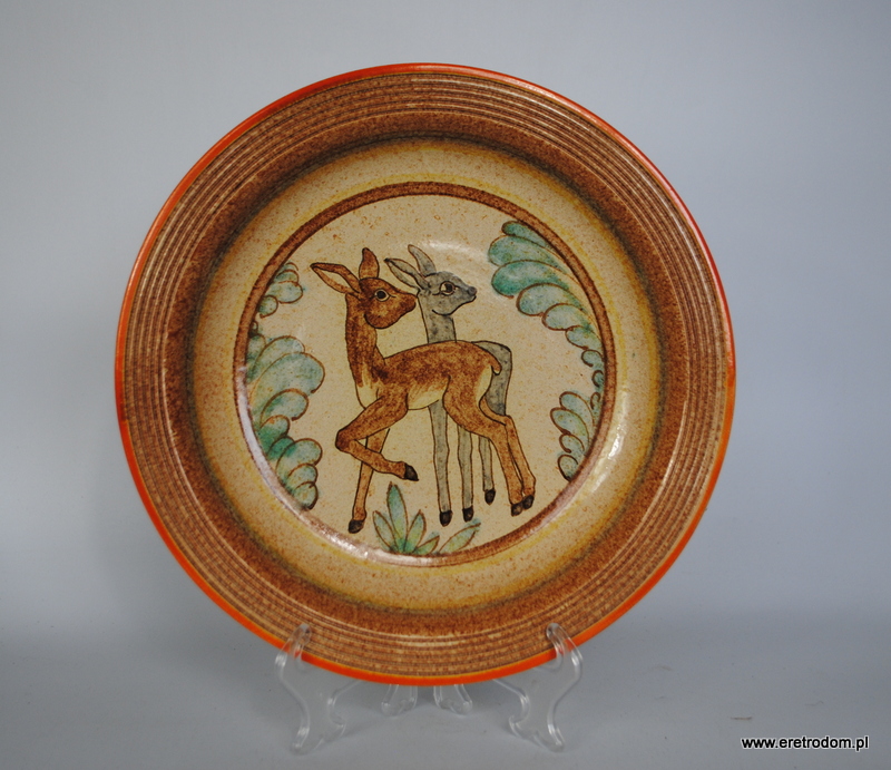 Patera, talerz dekoracyjny. II poł. XXw. Ceramika ręcznie malowana. Sygnatura numeryczna od spodu.