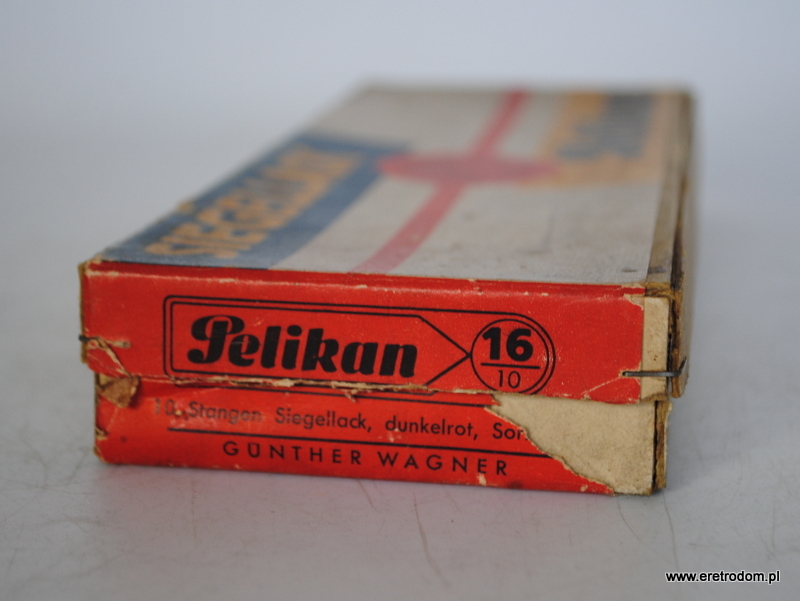 Lak wyprodukowany przez firmę Pelikan w I poł. XXw. W skład zestawu wchodzą dwie laski laku oraz oryginalne opakowanie.