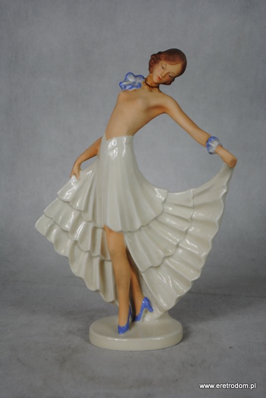 Figurka przedstawiająca kobietę tańczącą. Sygnowana Pirken Hammer. Piękna porcelana ręcznie malowana.
