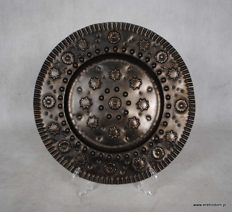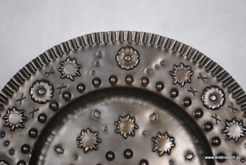 Plakieta ozdobiona motywem kwiatowymi. Metal tłoczony. Polska, lata 70 XXr.