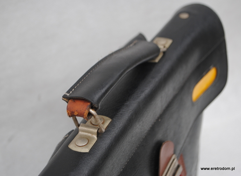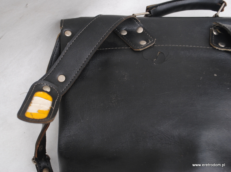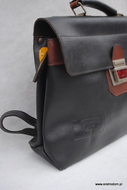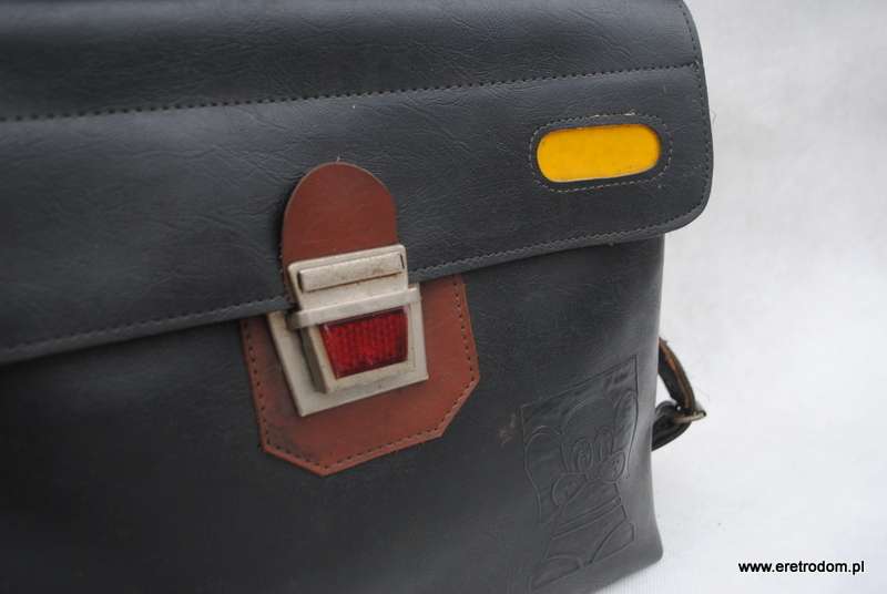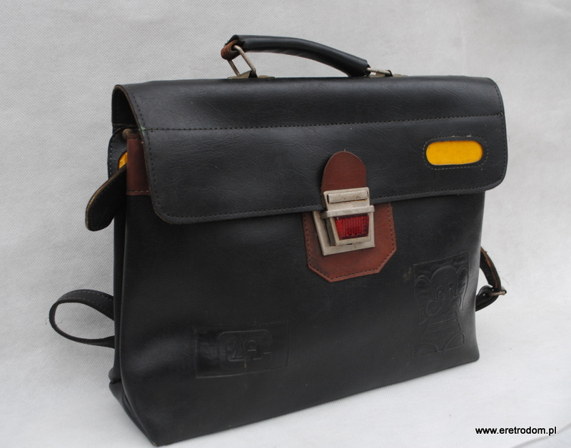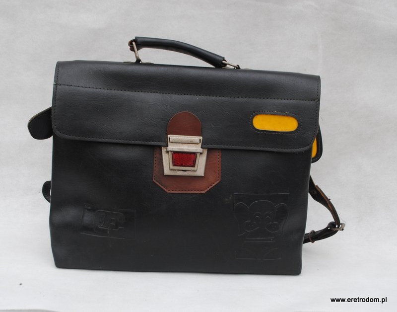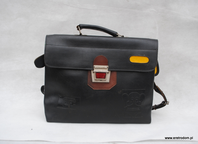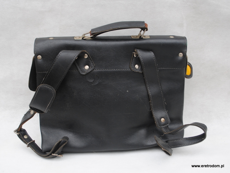 Tornister szkolny z II poł. XXw. Zapięcie metalowe.