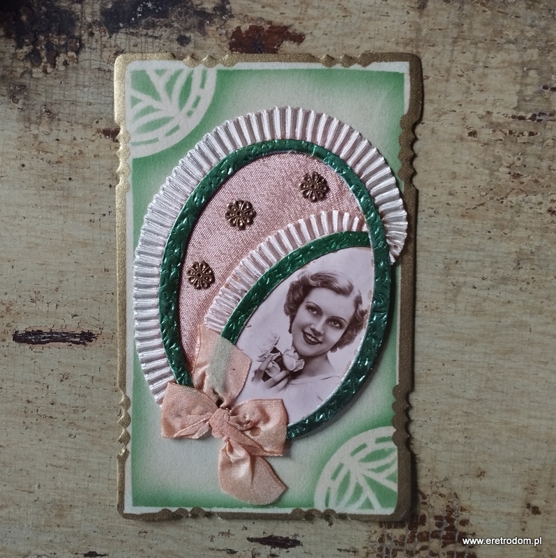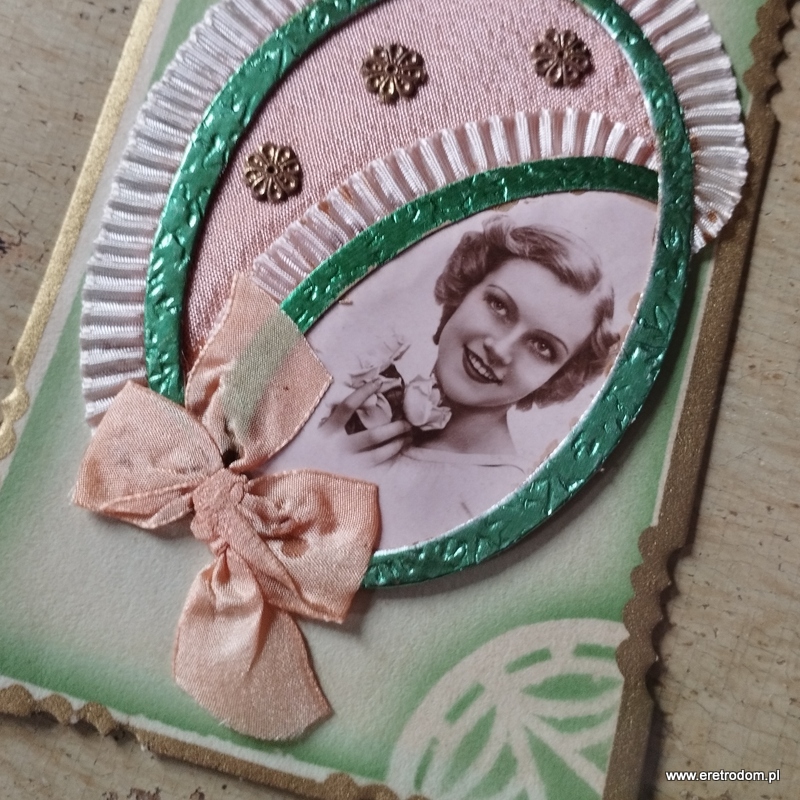 Kartka pocztowa utrzymana w stylistyce późnego Art Deco. Dekoracja plastyczna. Kartka wypisana ( życzenia z 1947 roku). Piękne wykonanie.