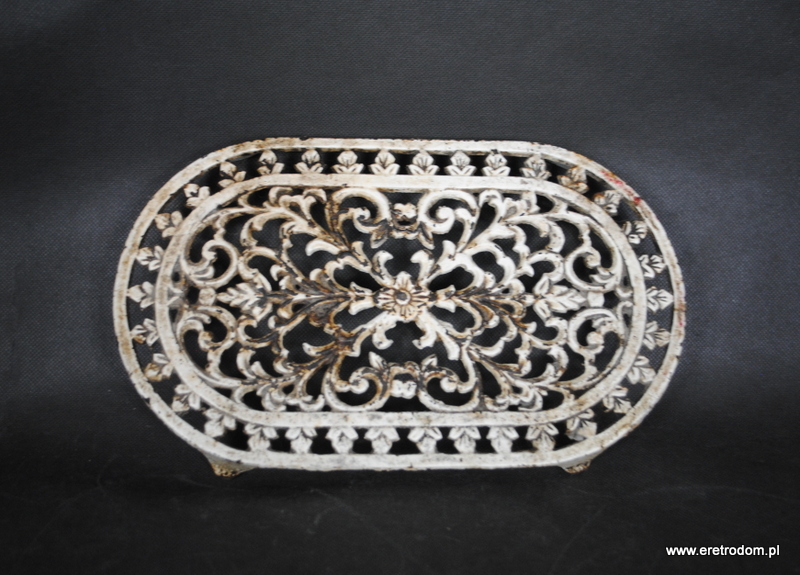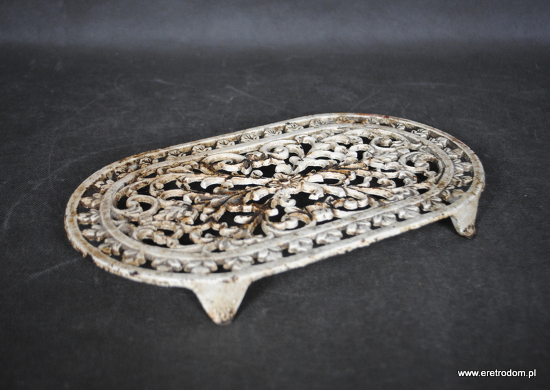 Metalowa, strojna podstawa pod żelazko. Wyrób z I poł XXw.
