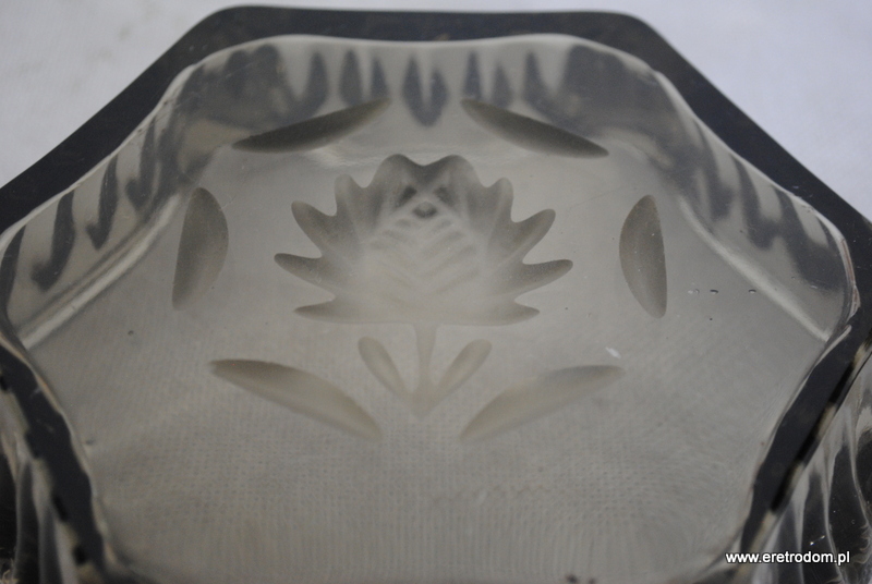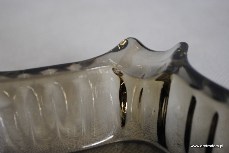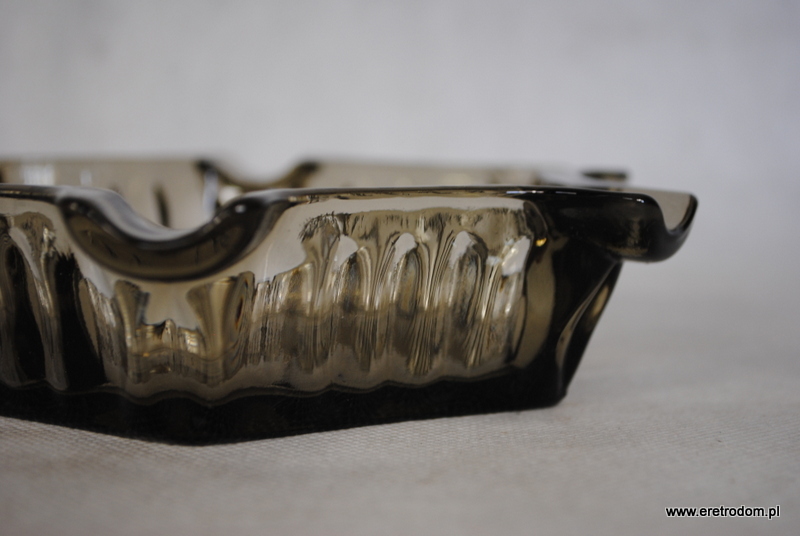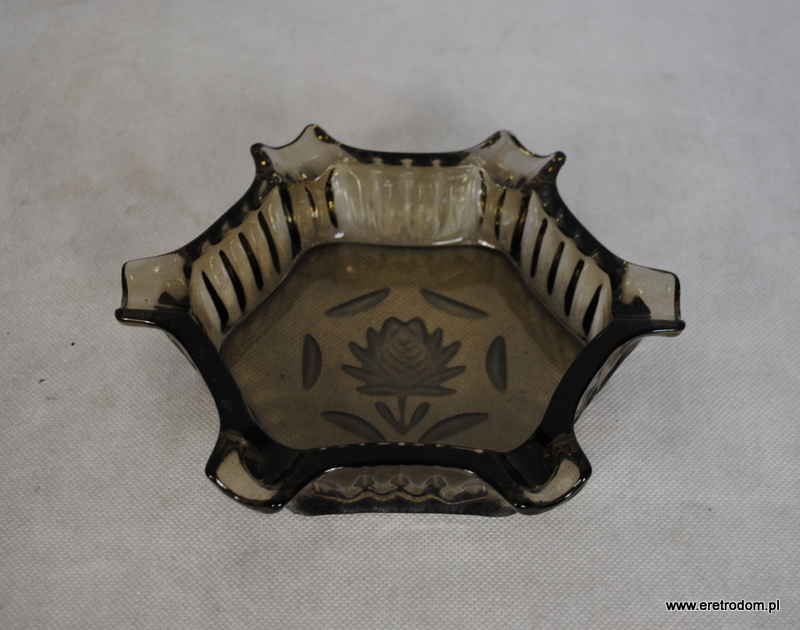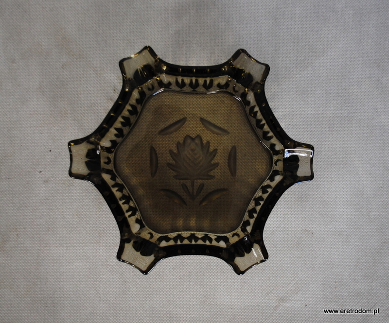 Popielnica wykonana ze szkła prasowanego barwionego w masie. W centralnej części występuje matowy kwiat. Popielnica na 6 cygar.