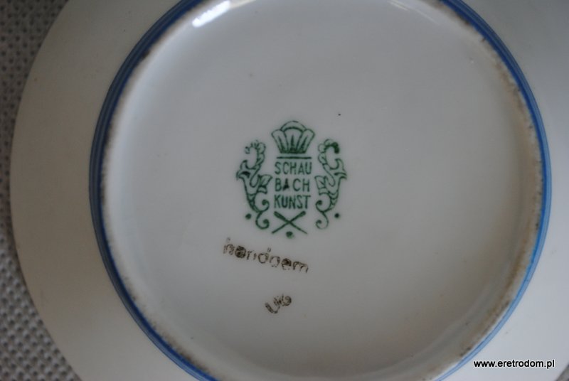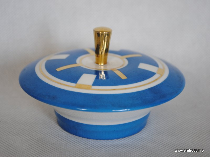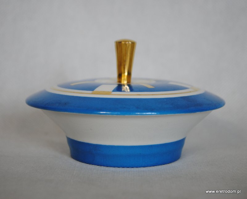 Bomboniera, cukiernica utrzymana w stylu Art Deco, wyprodukowana z porcelany przez Schaubachkunst. Piękna malatura.