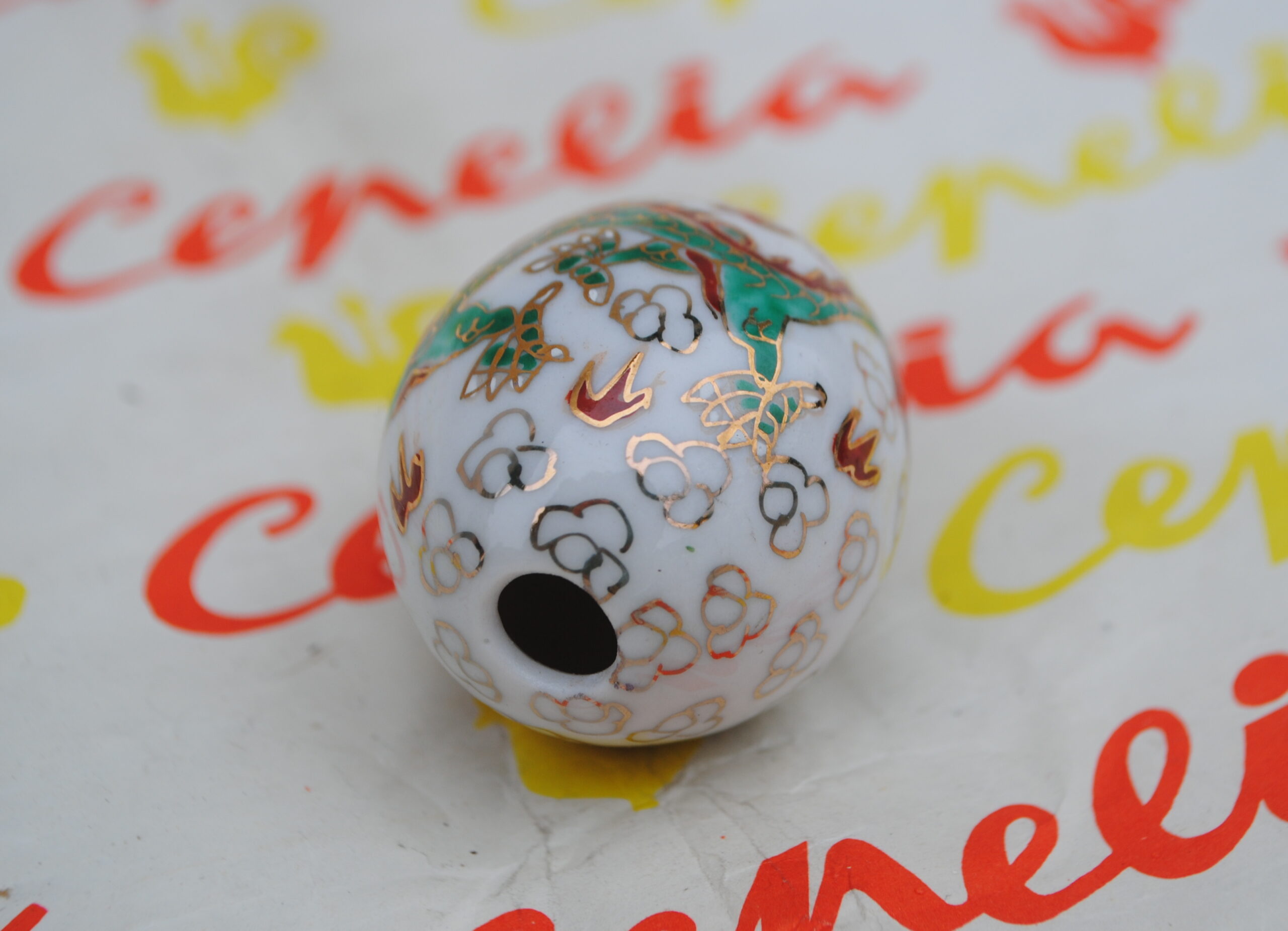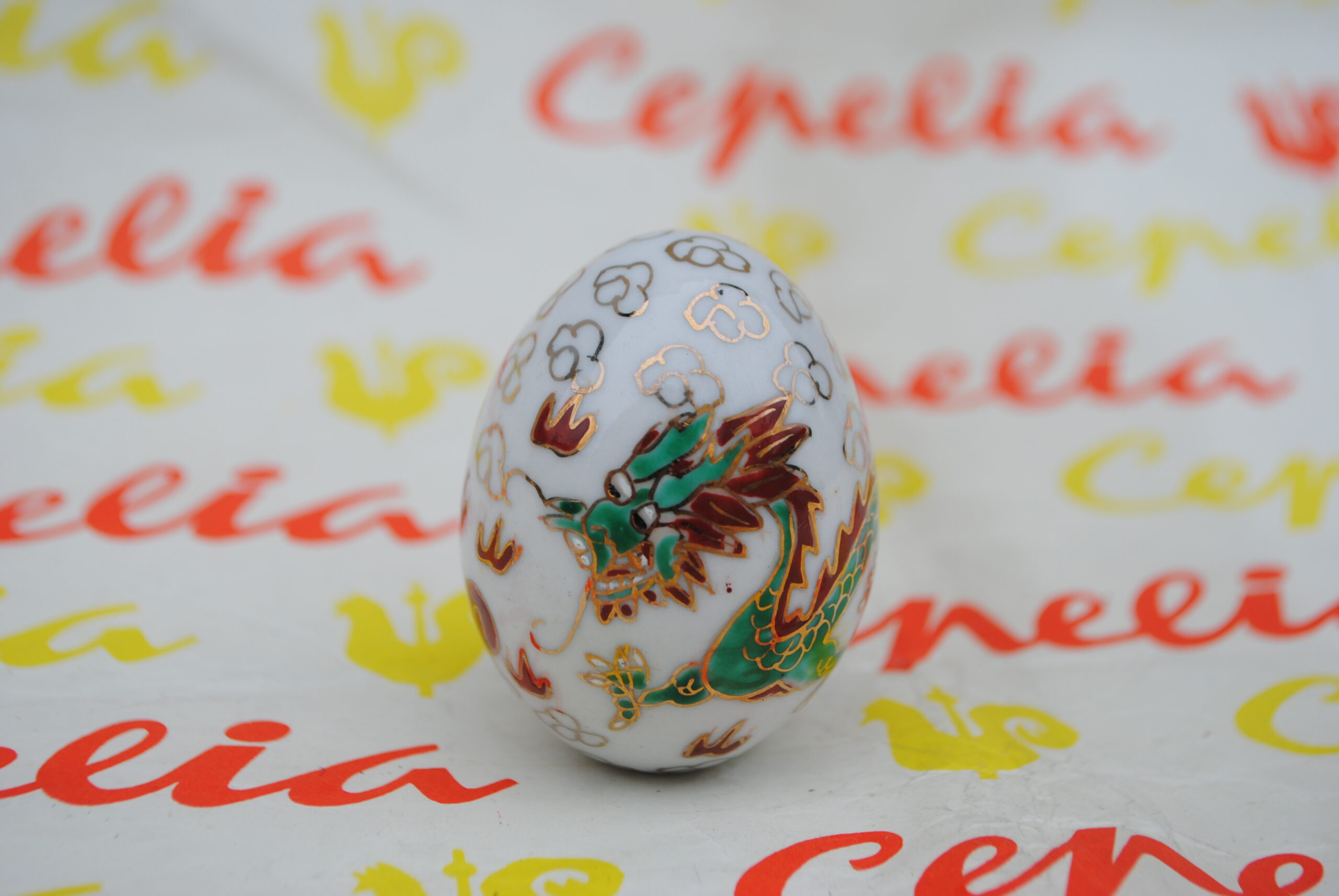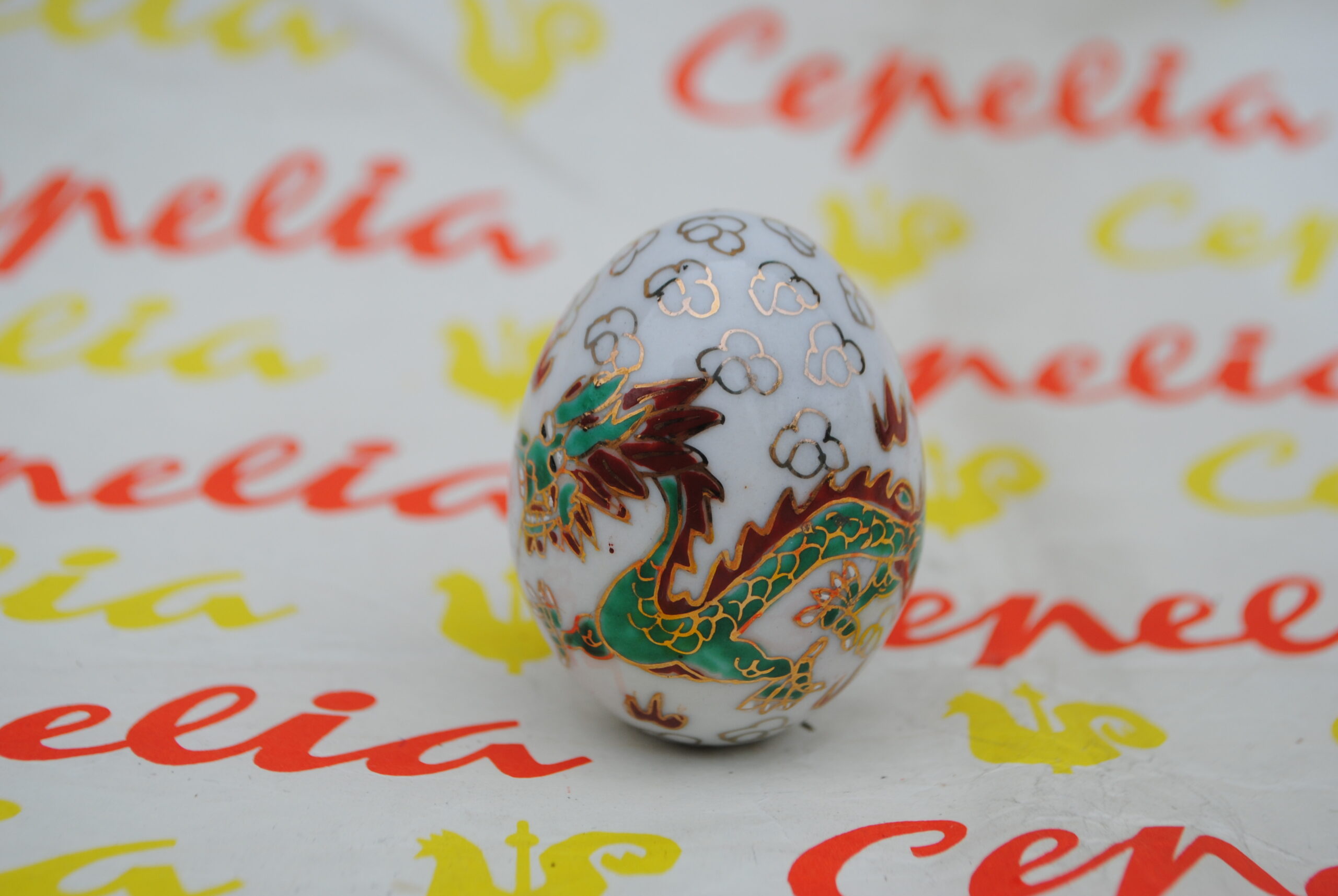 Jajko wykonane z porcelany, ręcznie malowane w orientalnym stylu.