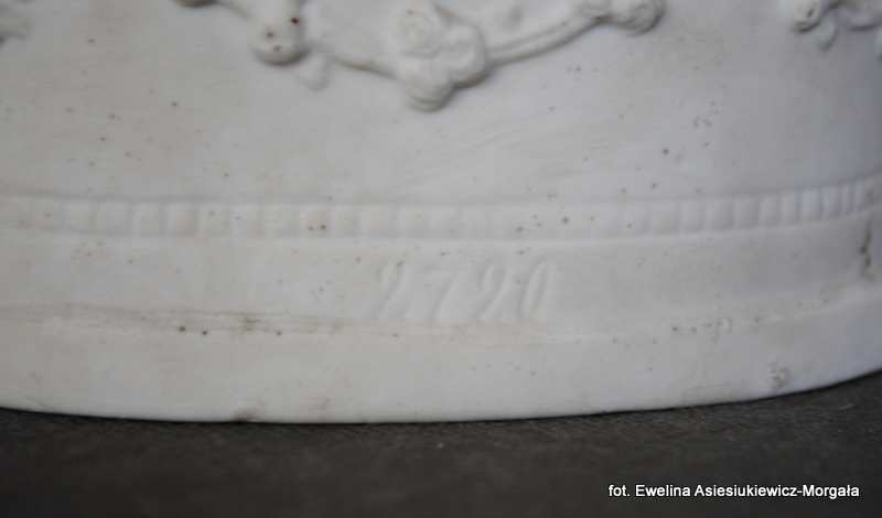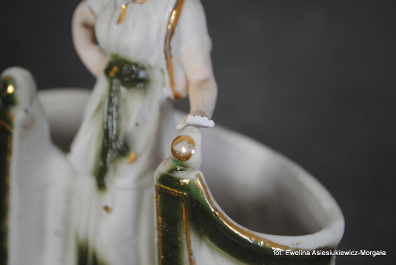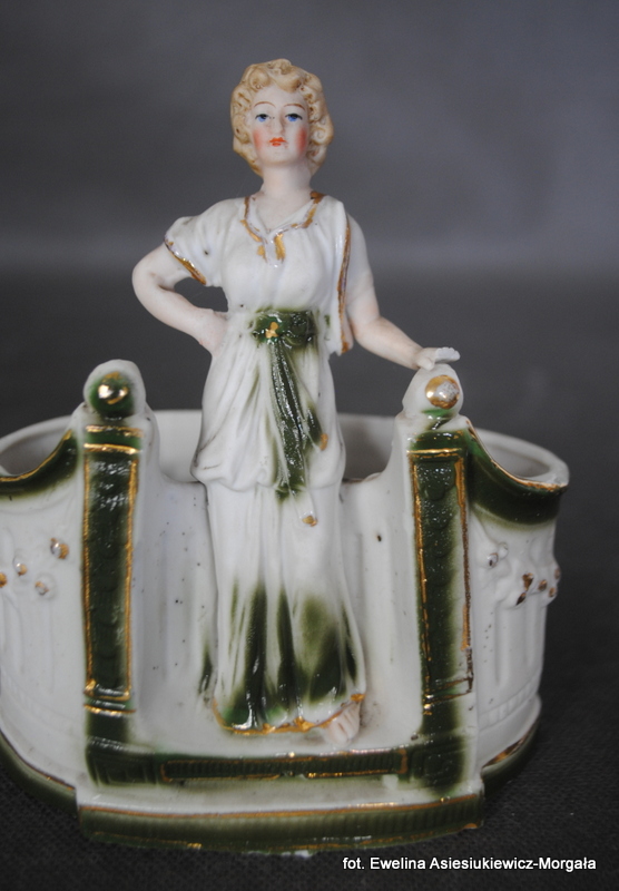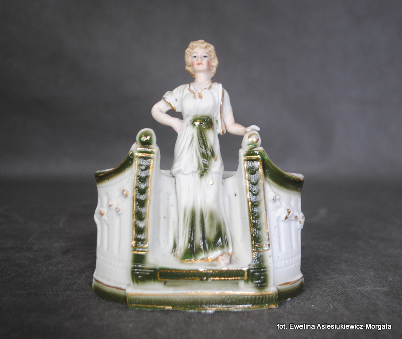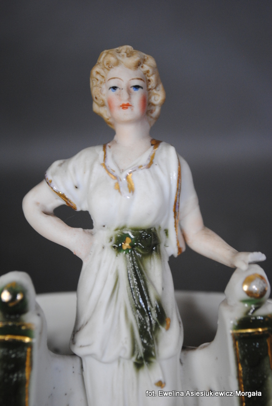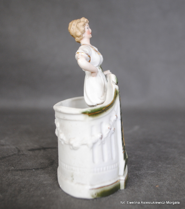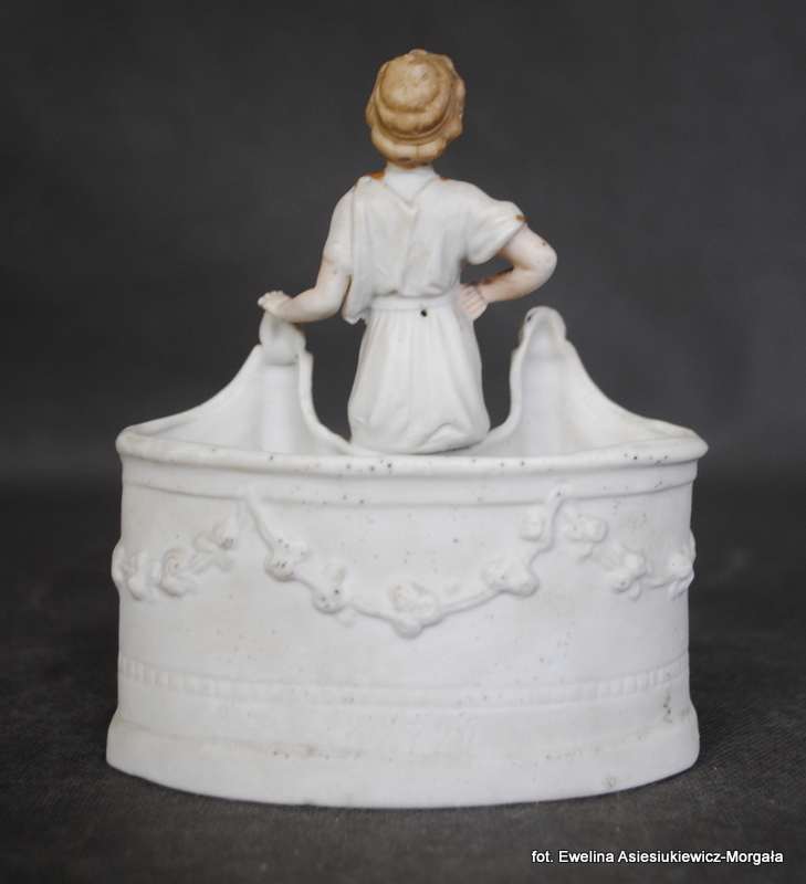 Biskwitowy pojemnik na biurko. I poł. XXw. Bardzo ładne wykonanie. W tylnej części sygnatura numeryczna.