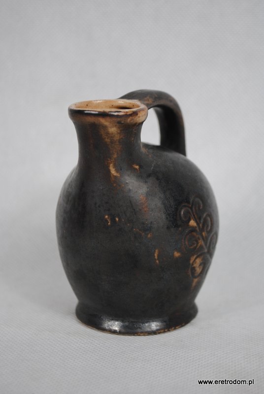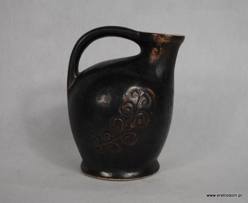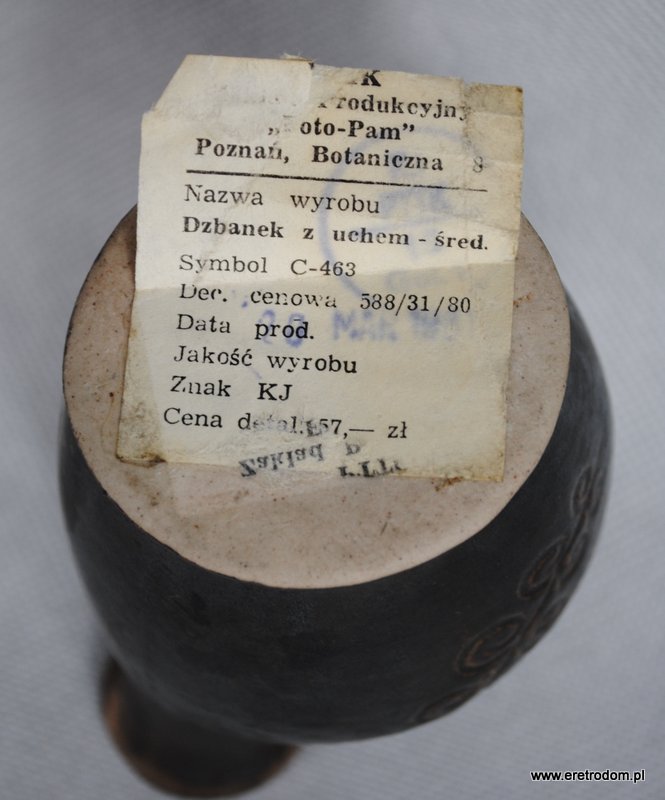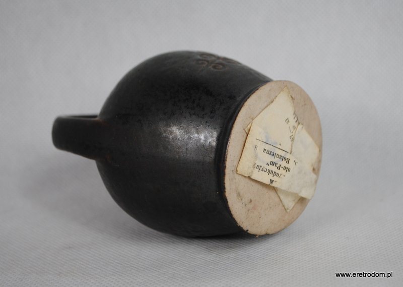 Dzbanek z uchem, produkcja PTTK Zakład Produkcyjny Foto-Pam. Ceramika szkliwiona. Od spodu kartka producenta.