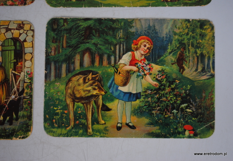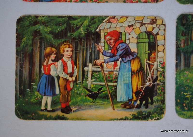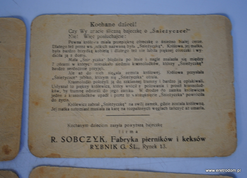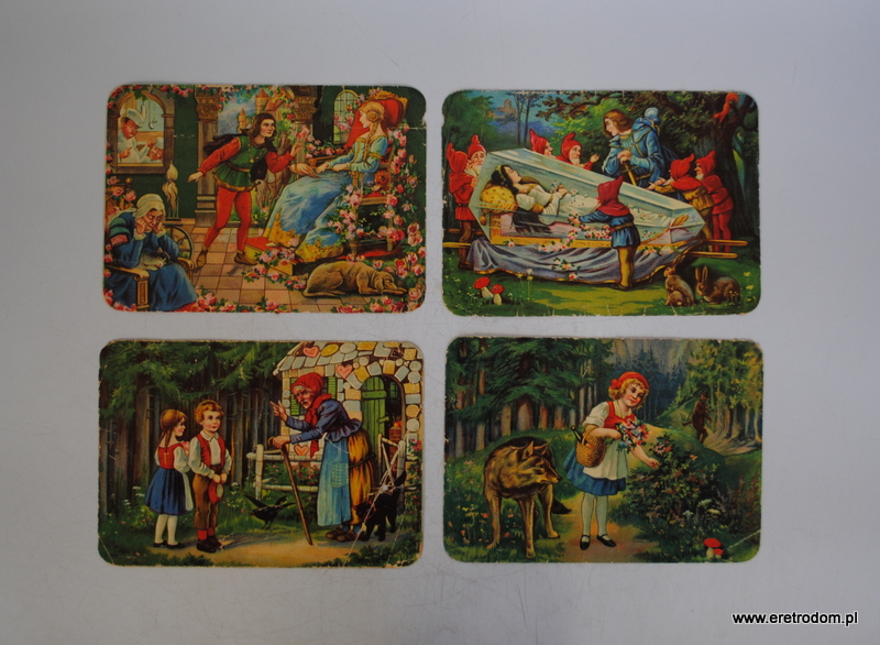 Zestaw 4 obrazków z bajkami. R. Sobczyk Fabryka pierników i keksów, Rybnik, I poł. XXw.