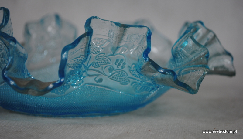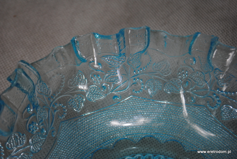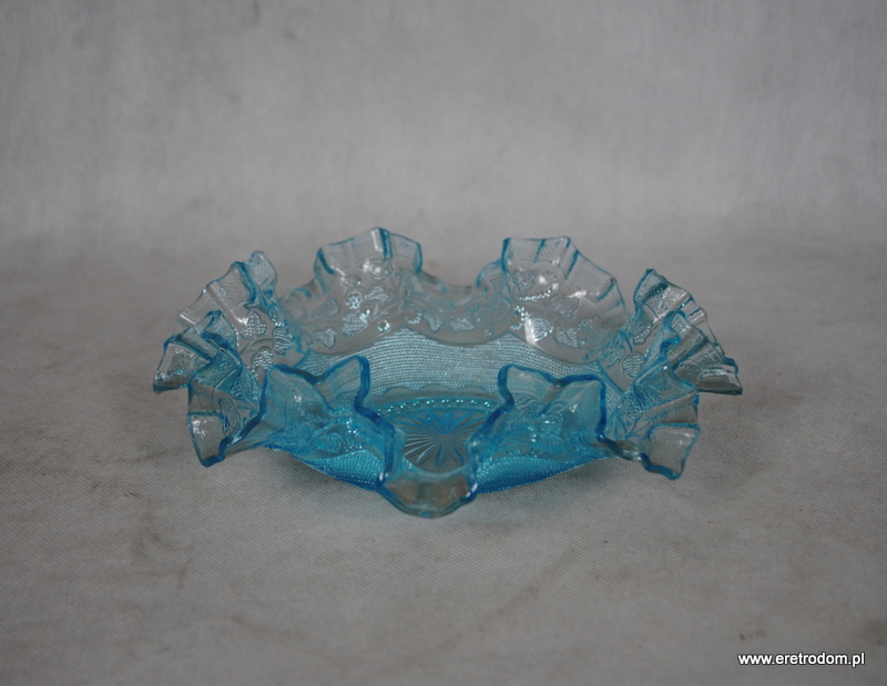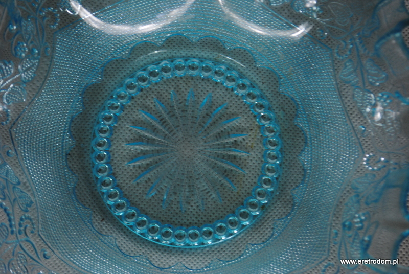 Misa wyprodukowana w hucie Radeberg ( wzór z 1897r. nazwany „Stickmuster”- „Haftowany wzór”). Szkło barwione w masie na turkusowy kolor. Bardzo ładne wykonanie.