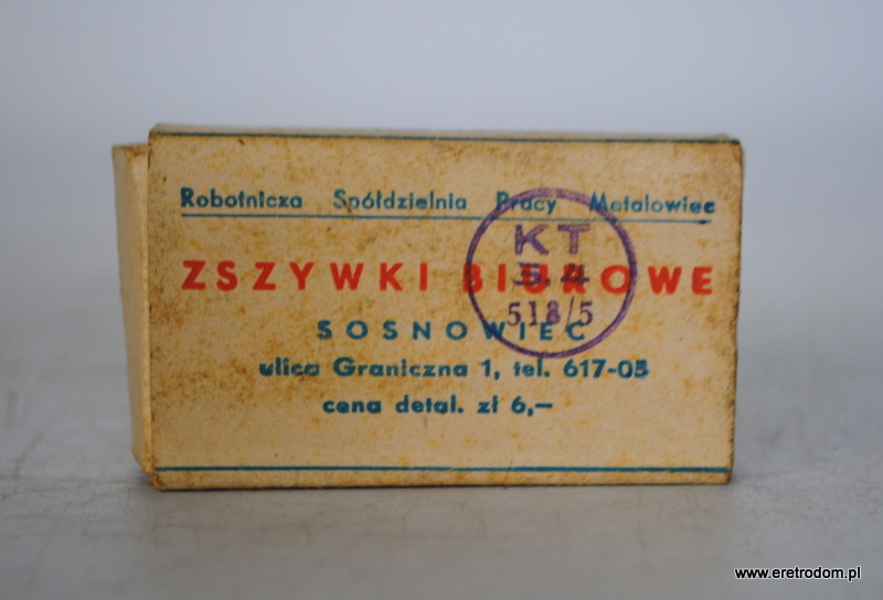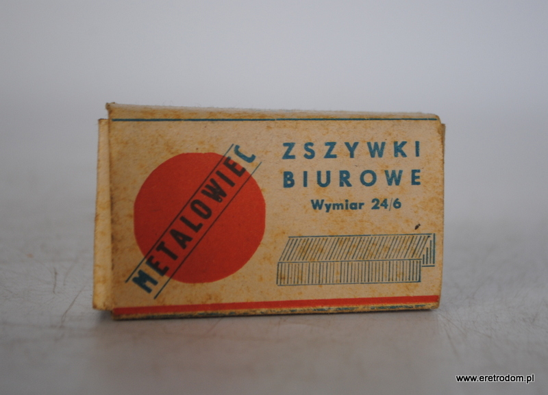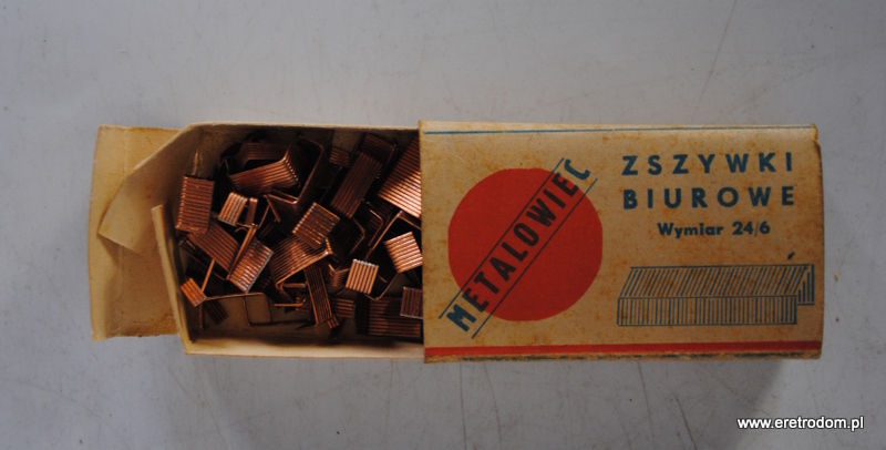Robotnicza Spółdzielnia Pracy Metalowiec zszywki biurowe. Całość w tekturowym opakowaniu.