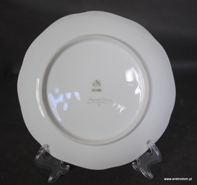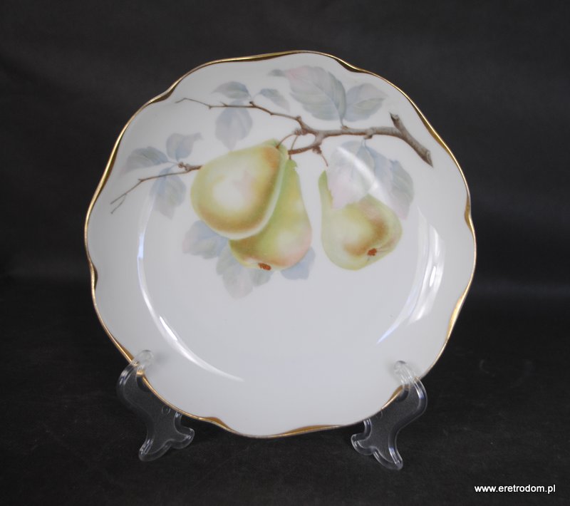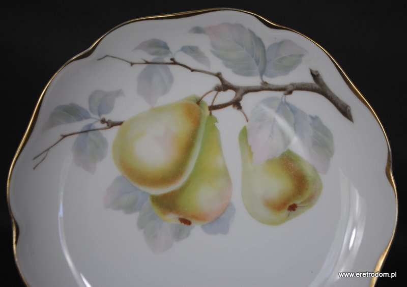 Talerz dekoracyjny sygnowany Rosenthal, seria Auguste Viktoria. Biała, delikatna porcelana ozdobiona motywem owoców.