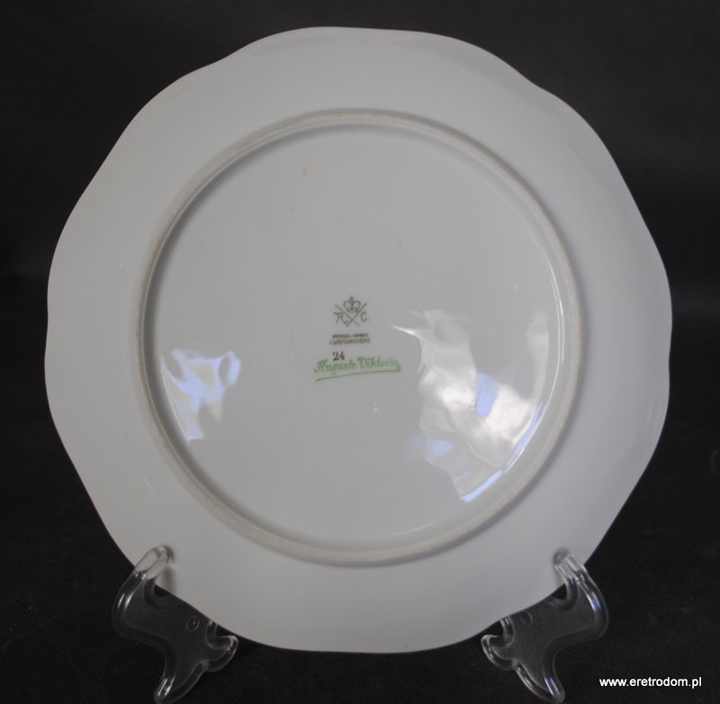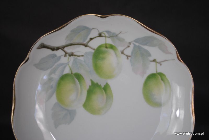 Talerz dekoracyjny sygnowany Rosenthal, seria Auguste Viktoria. Biała, delikatna porcelana ozdobiona motywem owoców.