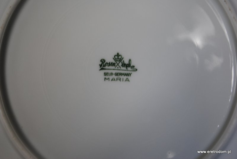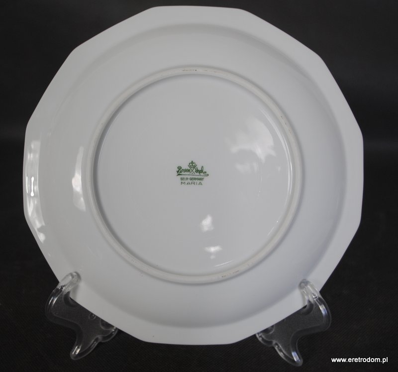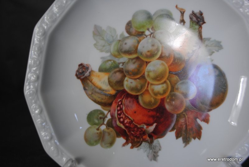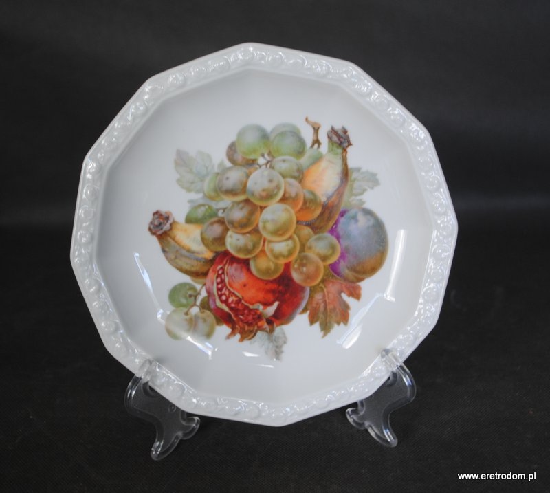 Talerz dekoracyjny sygnowany Rosenthal, fason Maria. Biała, delikatna porcelana ozdobiona motywem owoców.