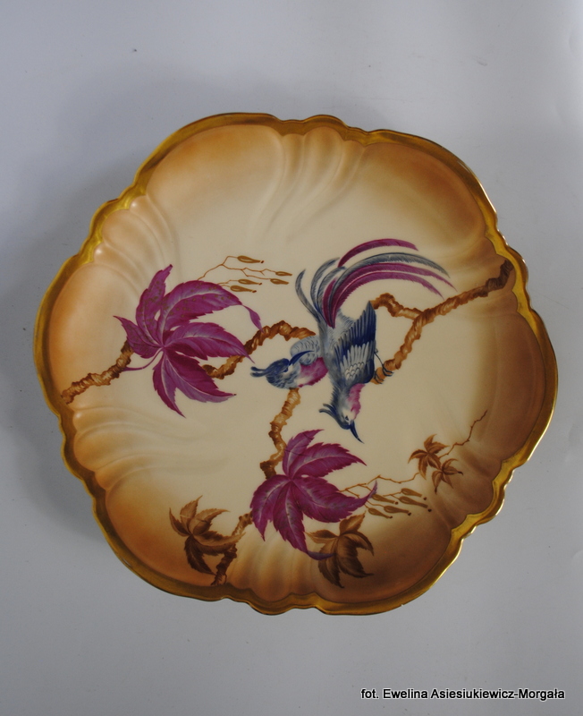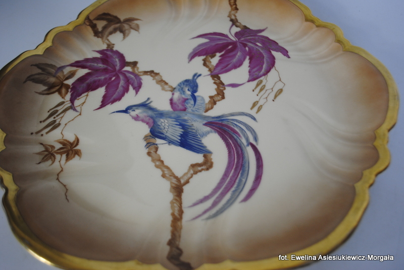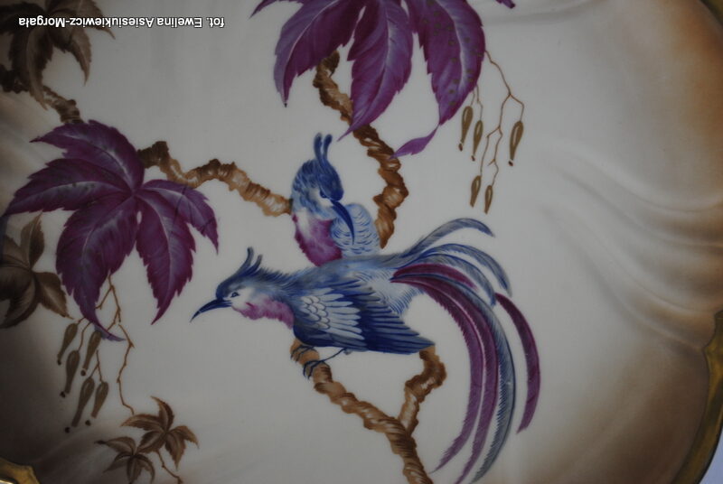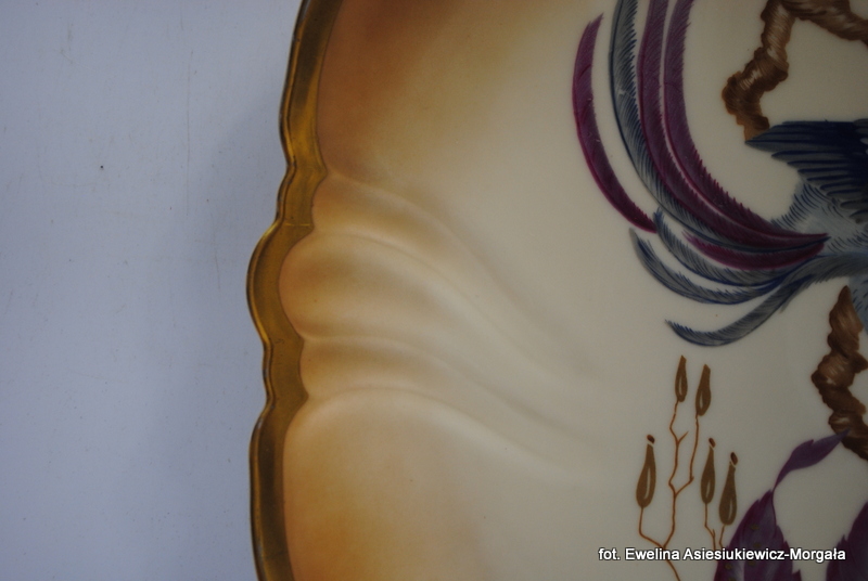 Patera sygnowana Rosenthal. Biała porcelana, pięknie ozdobiona rajskim ptakiem. Rant złocony.
