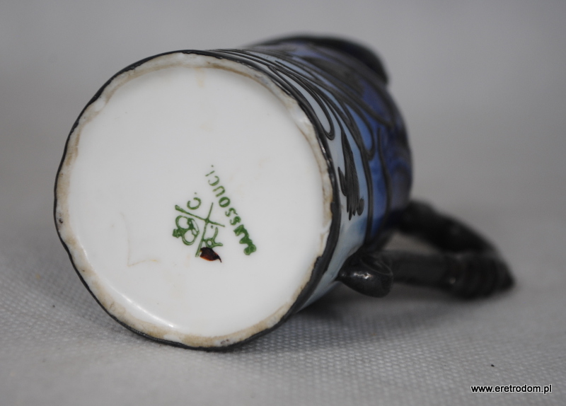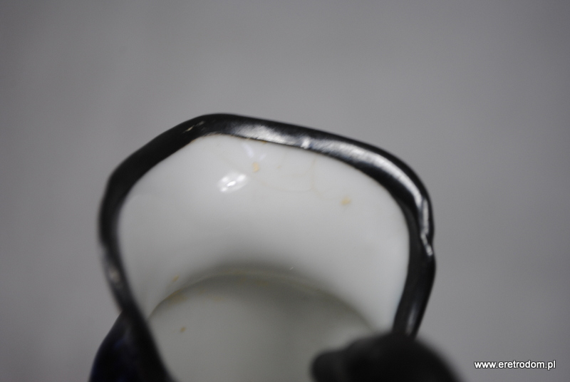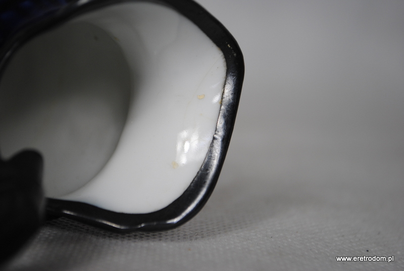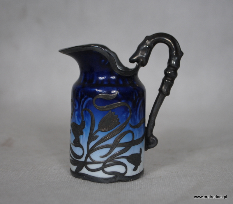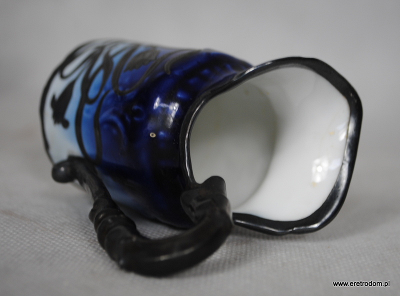 Niezwykłej urody mlecznik. Sygnatura Rosenthal Sanssouci (1895-1906r). Delikatna, biała porcelana malowana kobaltem, dodatkowo została okuta srebrem co tworzy niezwykłe połączenie.