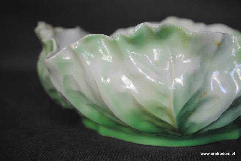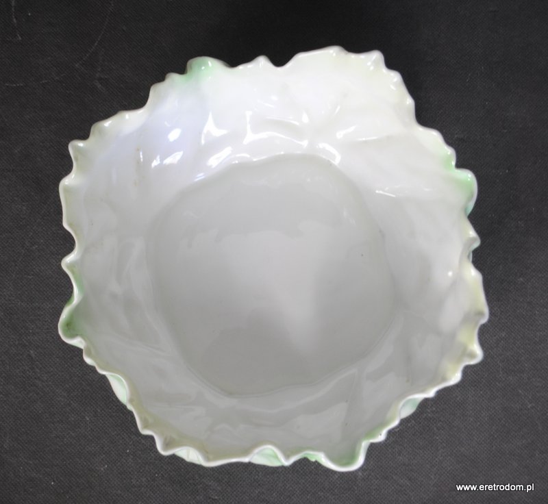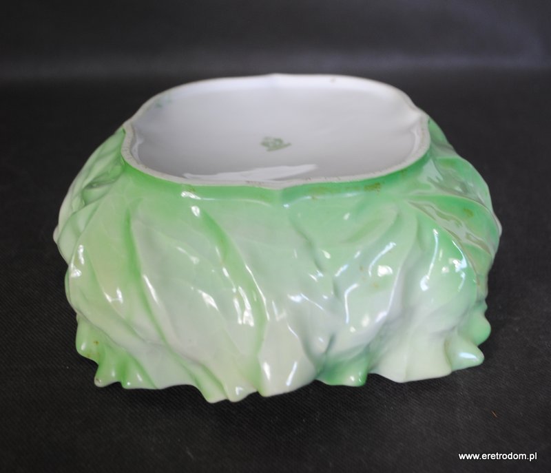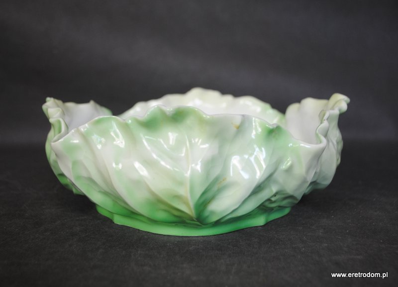Misa sygnowana Tułowice Schlegelmilch. Biała, delikatna porcelana formą przypomina kapustę. Malowana na ziemny kolor. Piękne wykonanie.