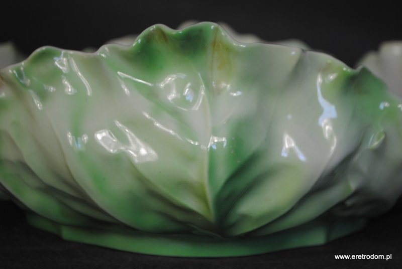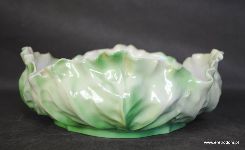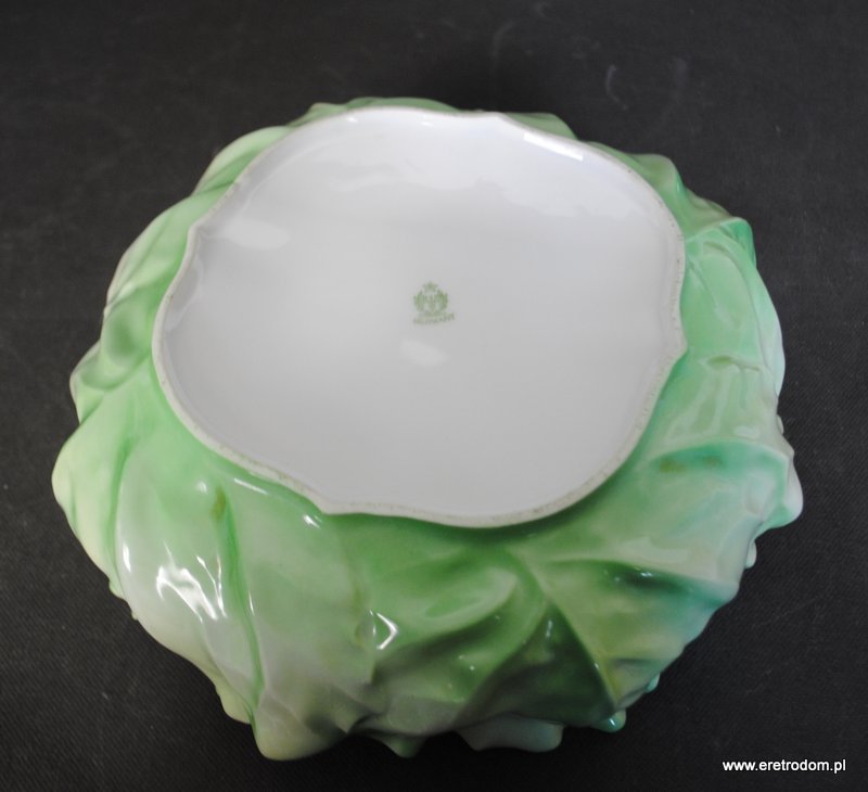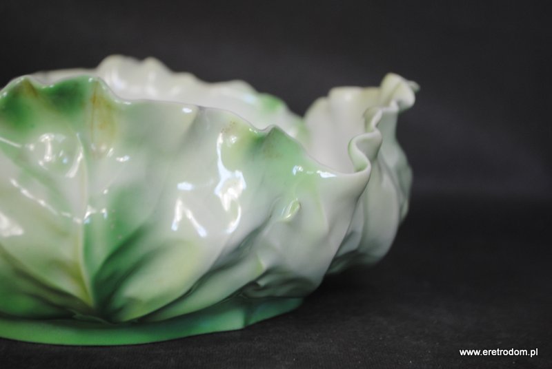 Misa sygnowana Tułowice Schlegelmilch. Biała, delikatna porcelana formą przypomina kapustę. Malowana na ziemny kolor. Piękne wykonanie.