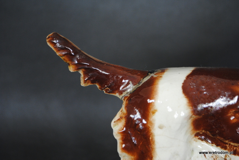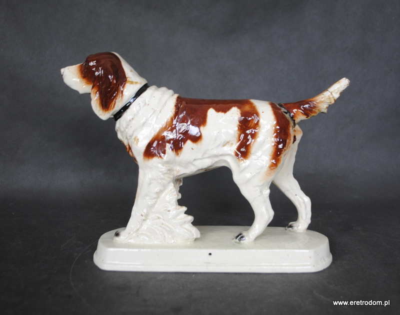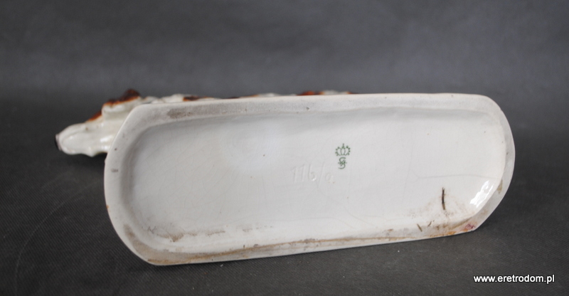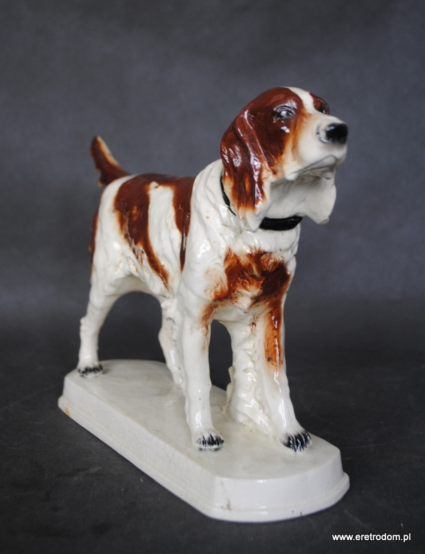 Figura przedstawiająca psa. Sygnowana Sitzendorf ( Niemcy, Turyngia). Ceramika ręcznie malowana, ładnie szkliwiona. Od spodu sygnatura producenta.