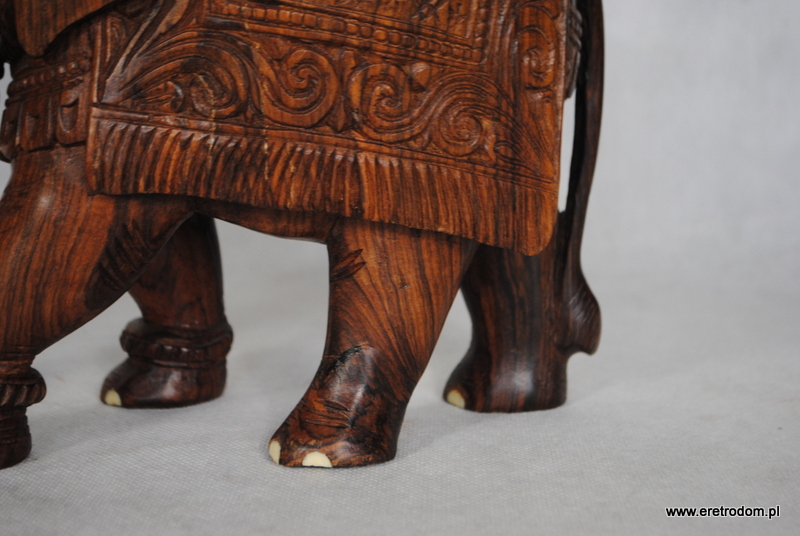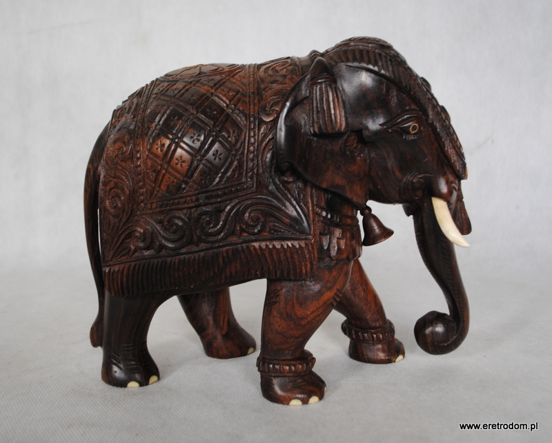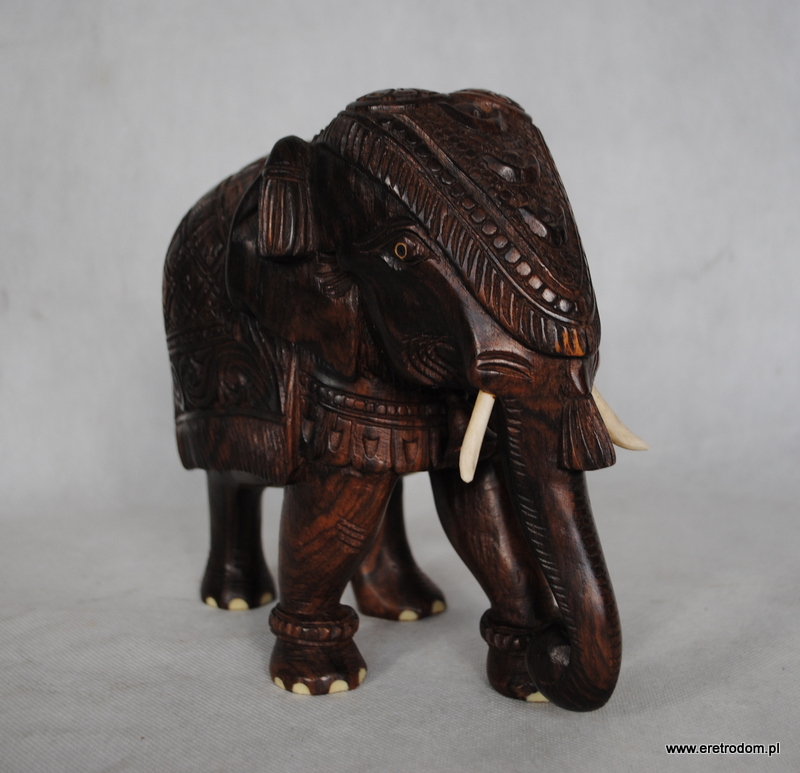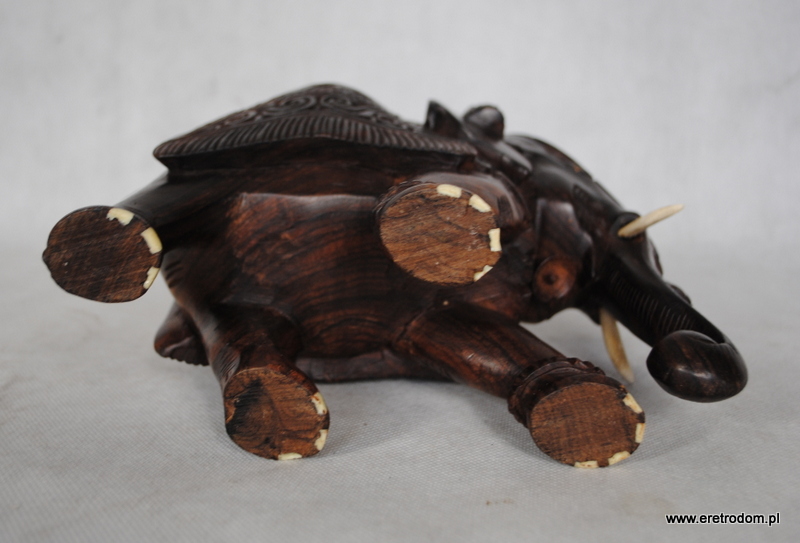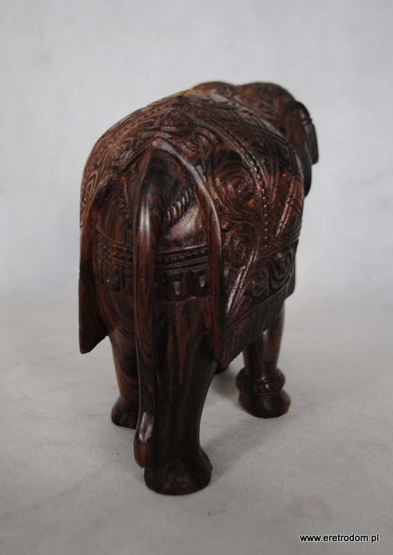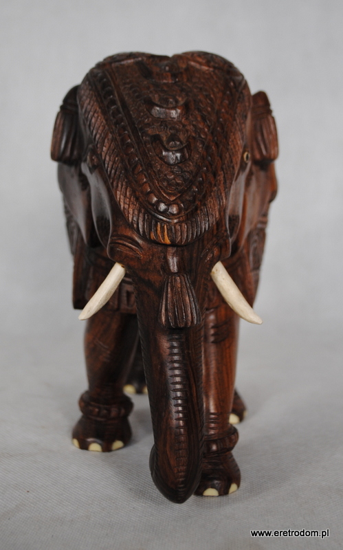 Sporych rozmiarów figura przedstawiająca słonia. Wykonana z jednego kawałka egzotycznego drewna. Ciężka, ładna praca.