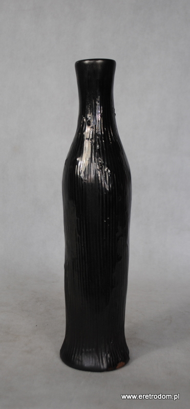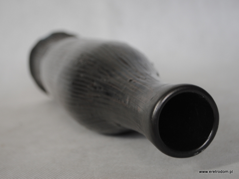 Wazon/butla, produkcja Spółdzielnia Przemysłu Ludowego i Artystycznego, Tomaszów Mazowiecki. Ceramika szkliwiona w odcień czarno-grafitowej satyny.