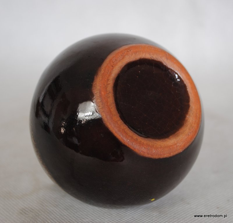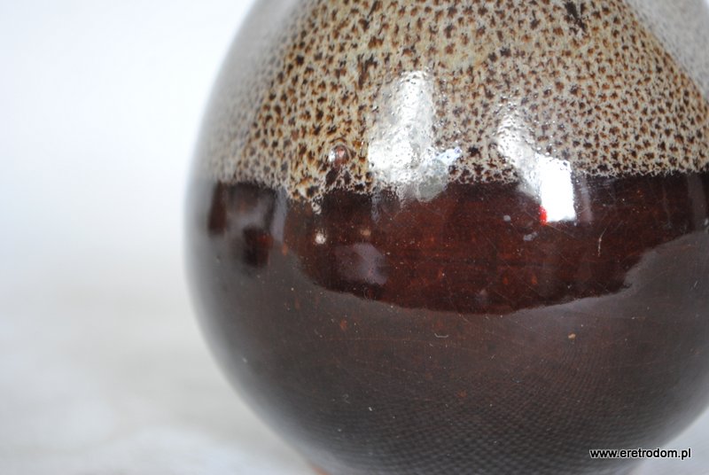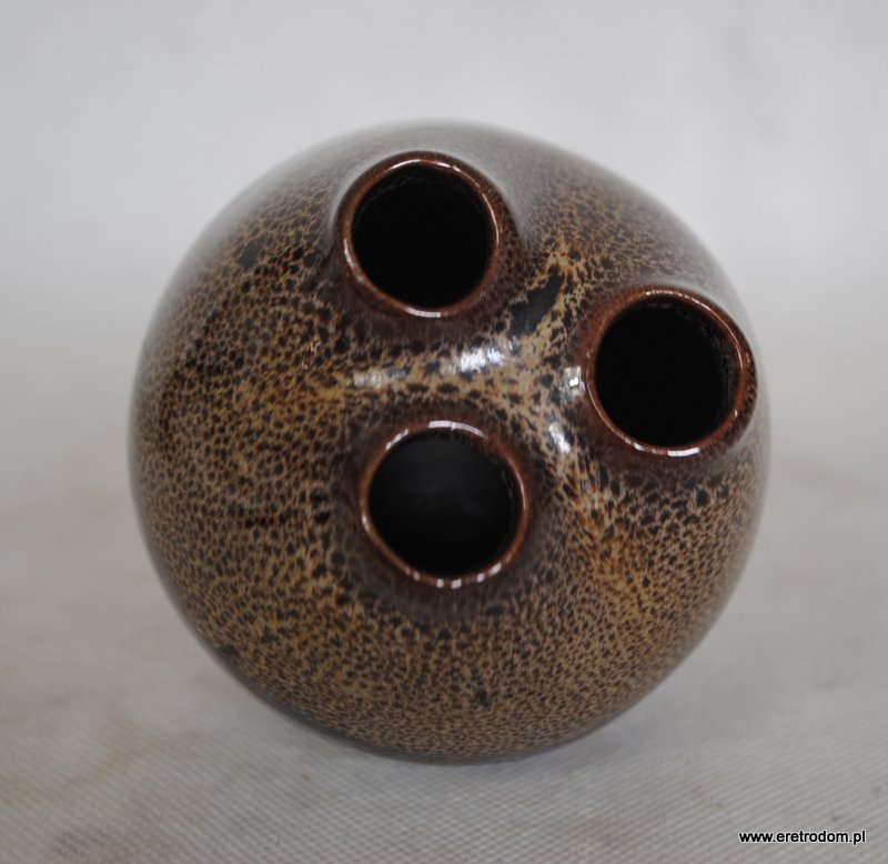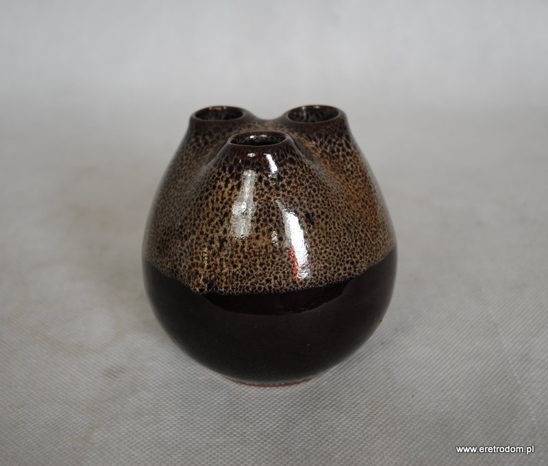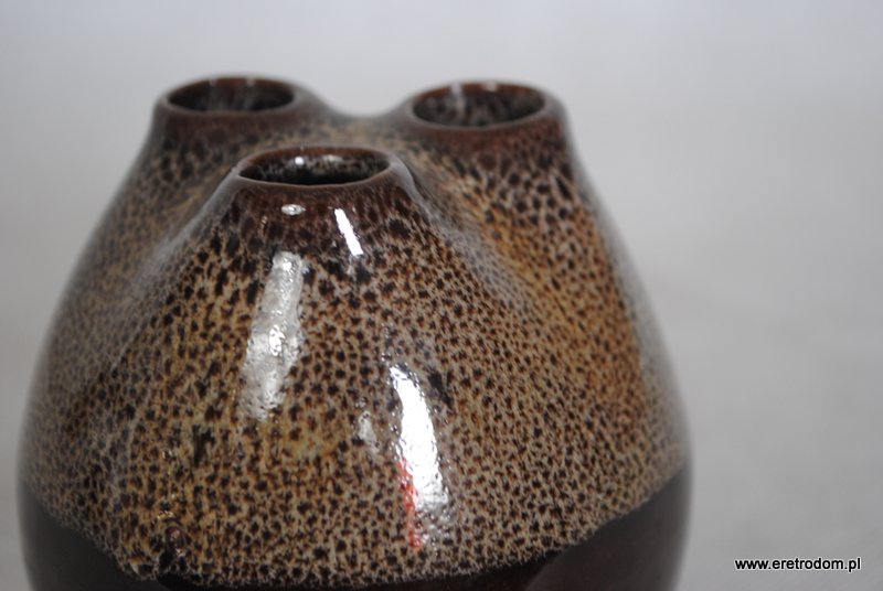 Wazon z trzema dziurkami, produkcja Spółdzielnia Przyjaźń Włocławek. Ceramika ładnie szkliwiona, od górnej części w drobne cętki.