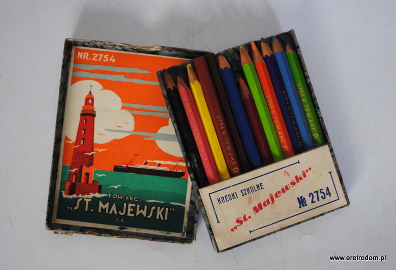 Kredki szkolne nr. 2754, Stanisław Majewski, I poł. XXw. Całość w oryginalnym opakowaniu.
