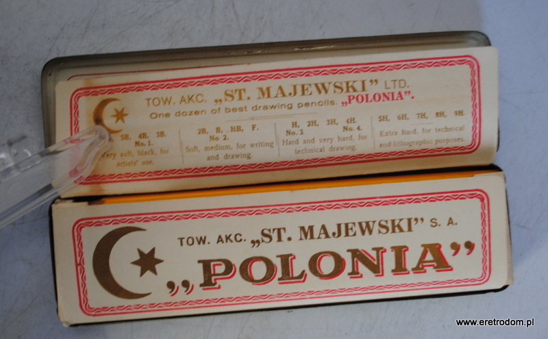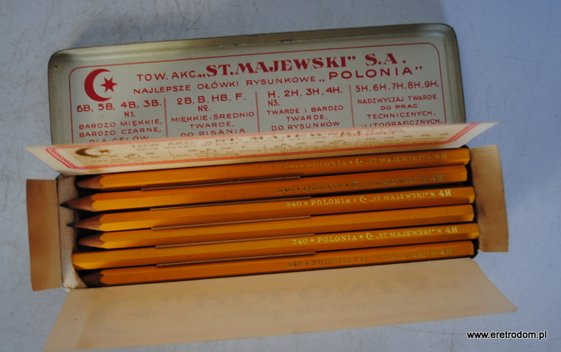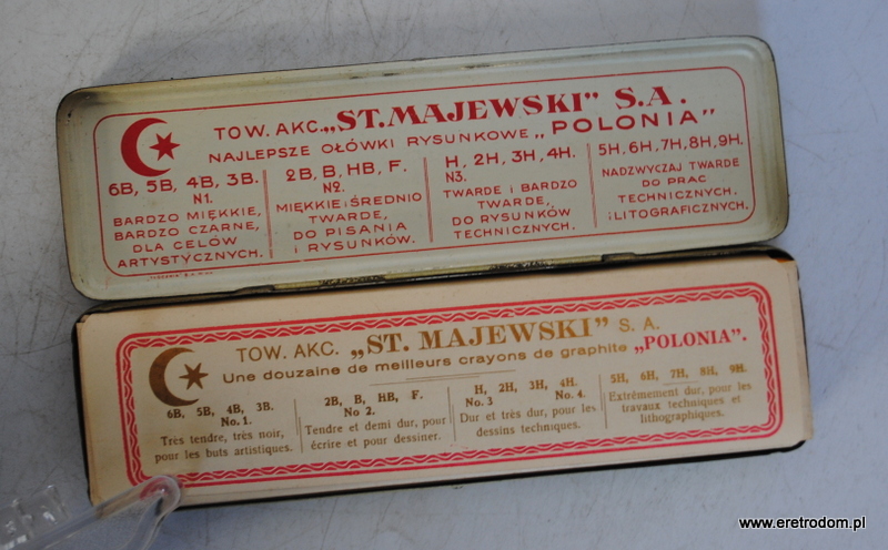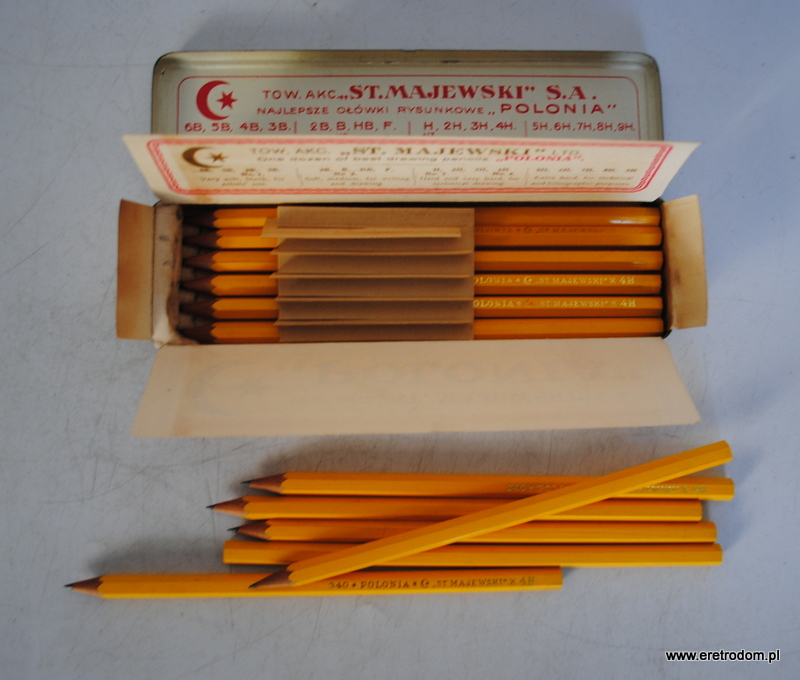 12 ołówków „Polonia” firmy Stanisław Majewski. I poł. XXw. Całość w metalowym opakowaniu.