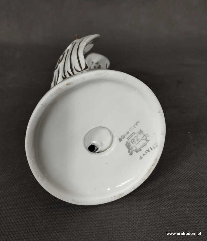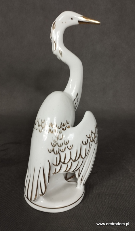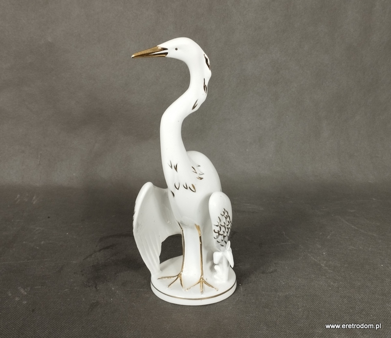 Figurka przedstawiająca czaplę/żurawia. Sygnowana Steatyt Katowice. Biała porcelana ręcznie malowana.
