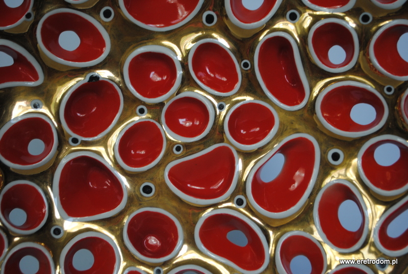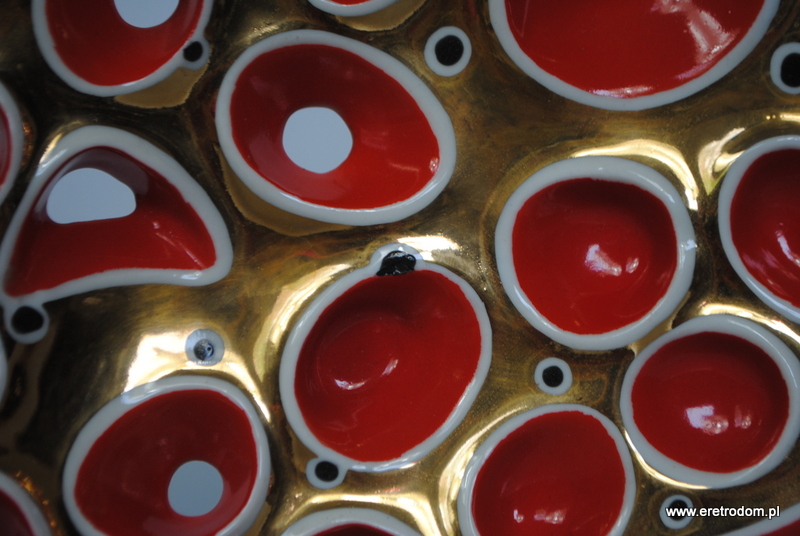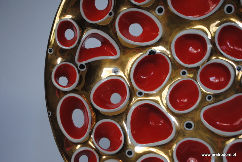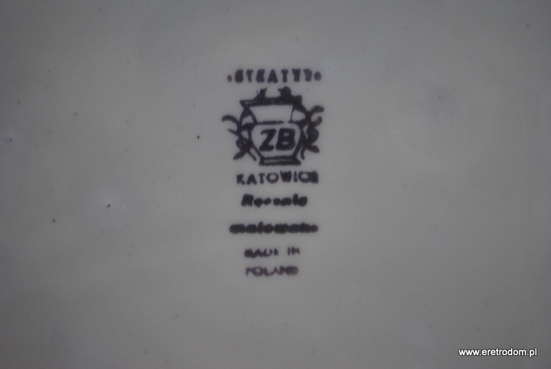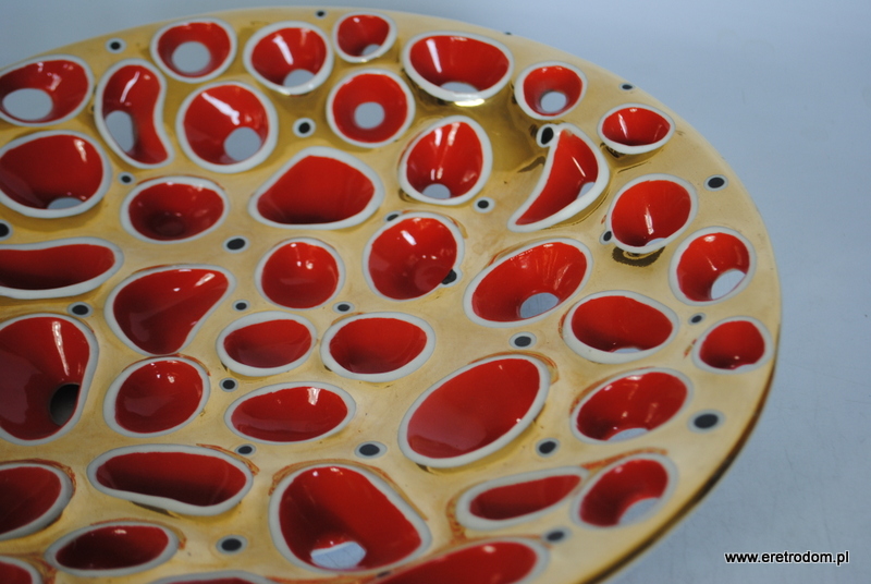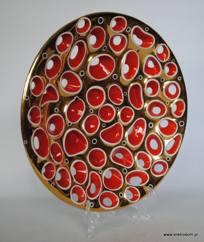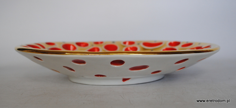 Okazały talerz dekoracyjny. Steatyt Katowice, II poł. XXw. Biała porcelana eksportowa malowana w stylu New Look. Ażurowa forma.