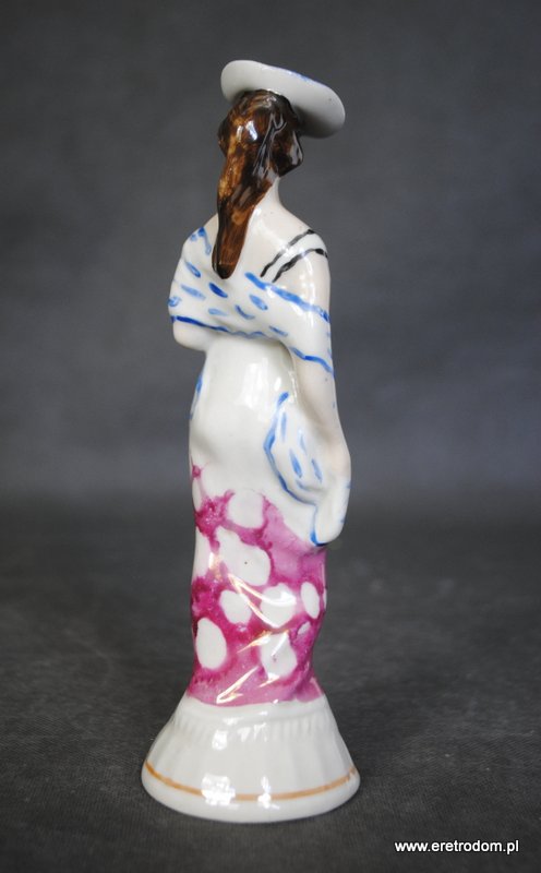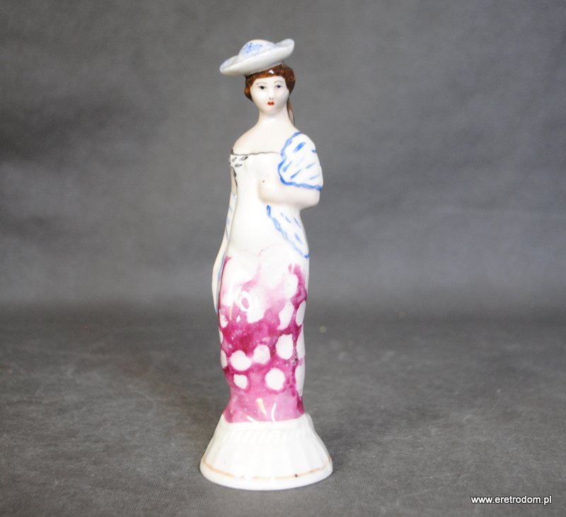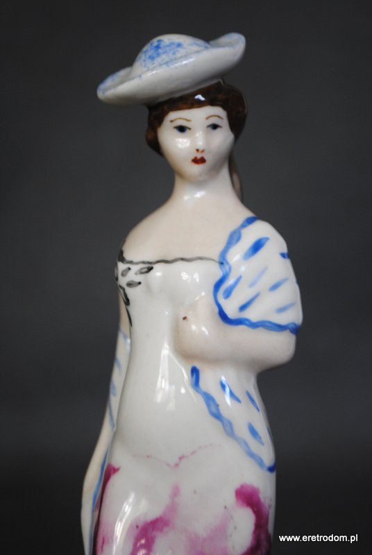 Figurka Dama w kapeluszu. Steatyt Katowice? II poł. XXw. Biała porcelana ręcznie malowana.