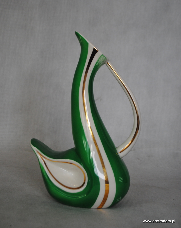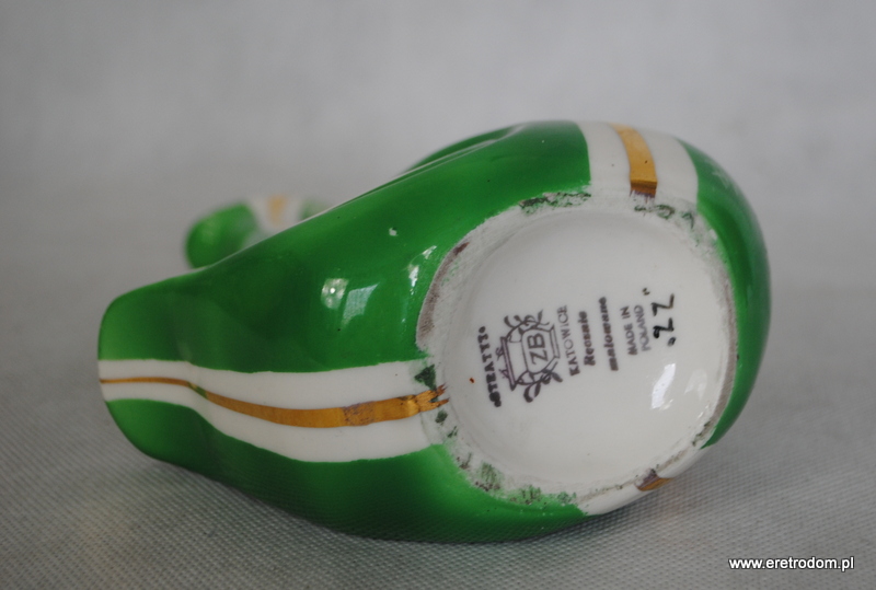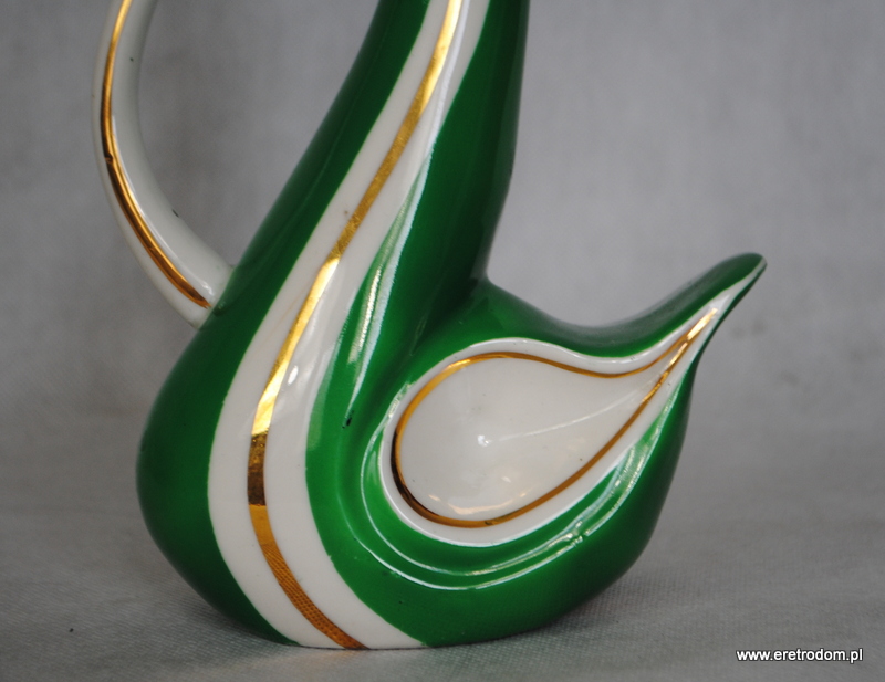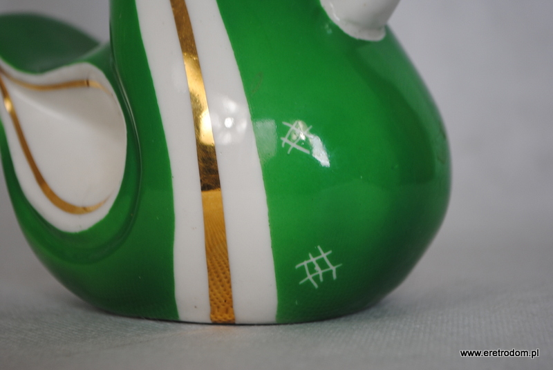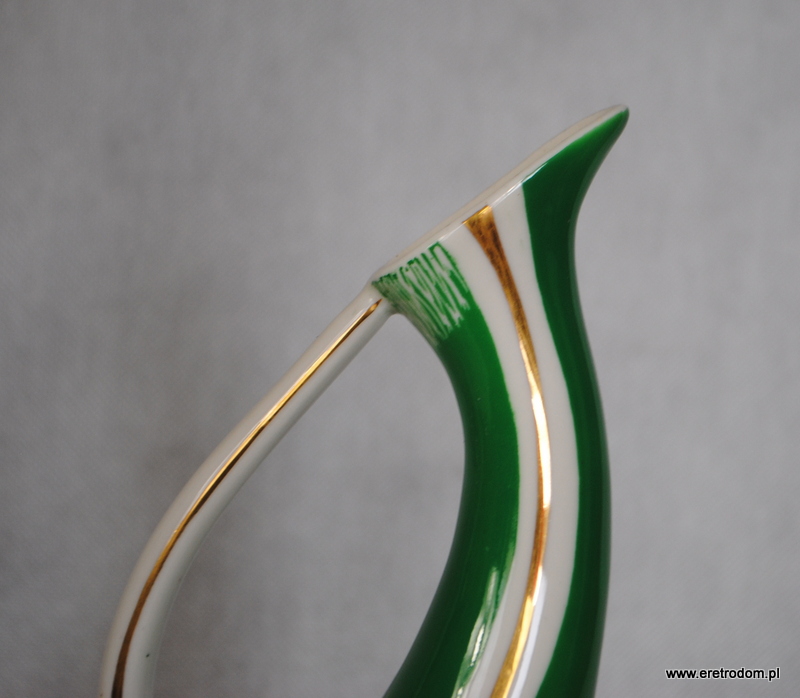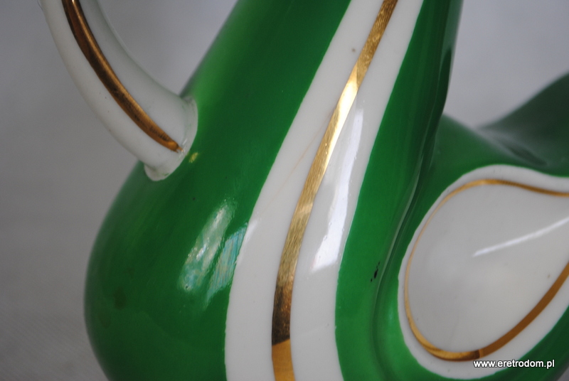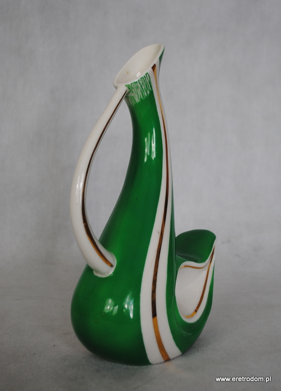 Wazon sygnowany Steatyt Katowice. Fason „ZZ”. Biała porcelana malowana w stylu New Look. Od spodu sygnatura producenta.