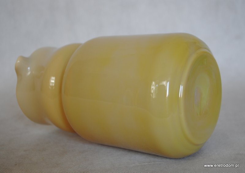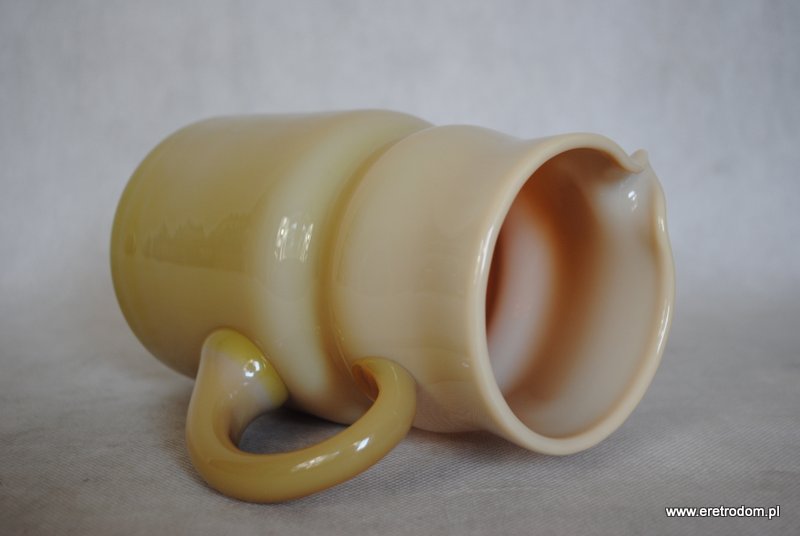 Dzbanek, Huta Szkła Sudety. Projekt Pana Stefana Sadowskiego. Szkło ręcznie formowane, barwione w masie na kolor kremowo cytrynowy, posiada smugi.
