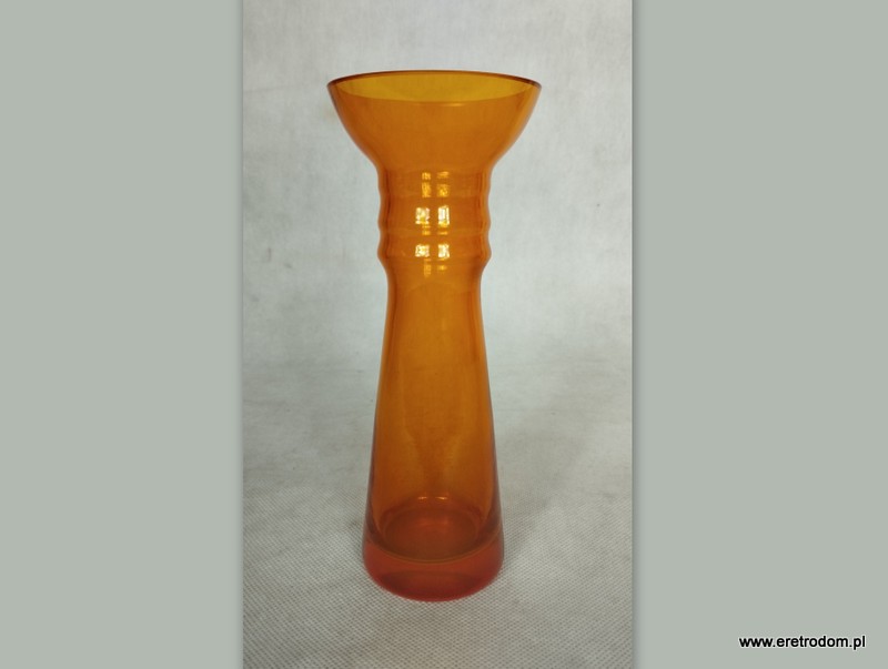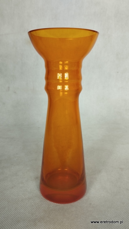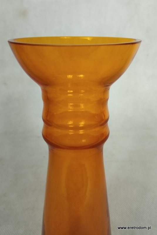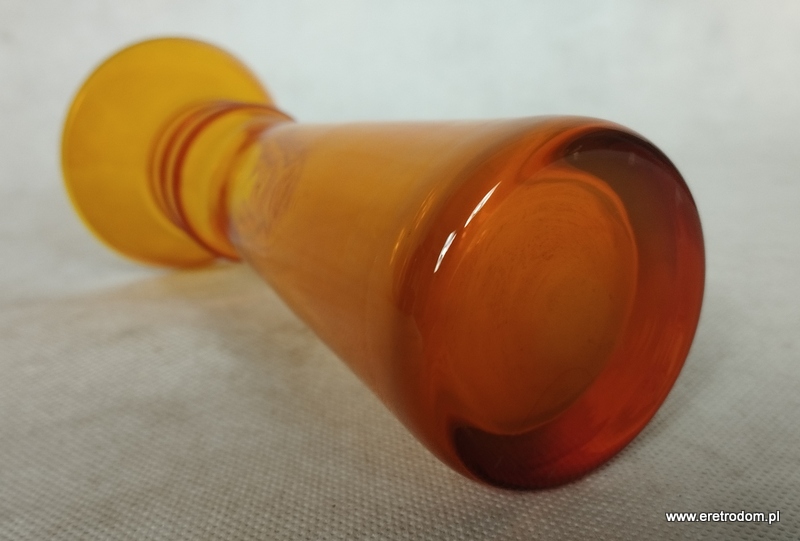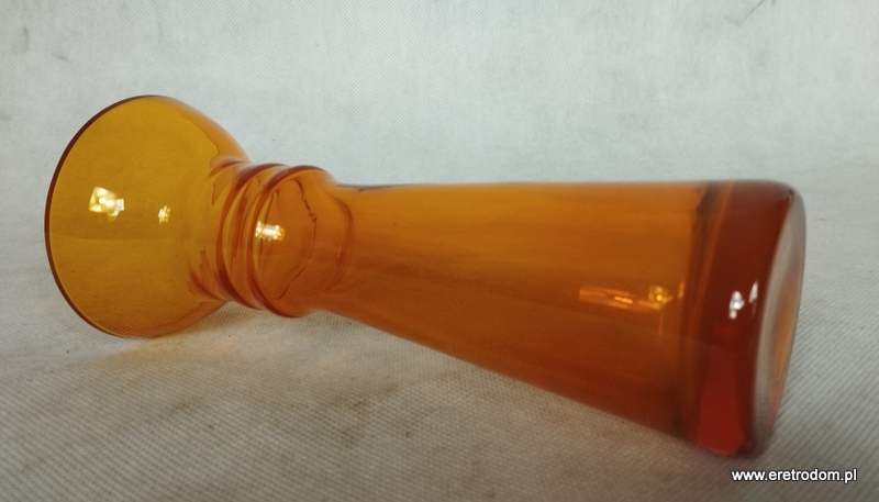 Świecznik projektu Kazimierza Krawczyka dla Huty Szkła Sudety (II poł XX w.). Szkło sodowe, barwione w masie.