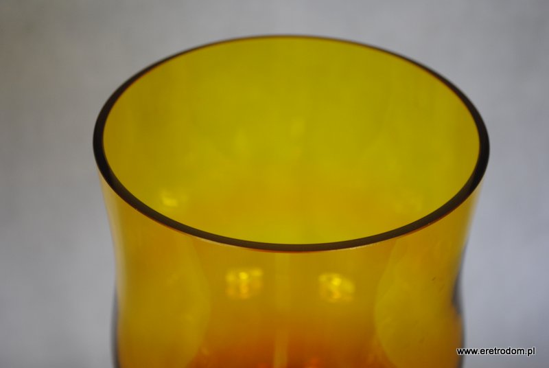 Kielich o nazwie Goliat, proj. Zbigniewa Horbowego dla Huty Sudety. Szkło sodowe, barwione w masie. Noga mleczna, czasza transparentna.
