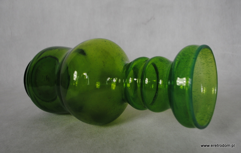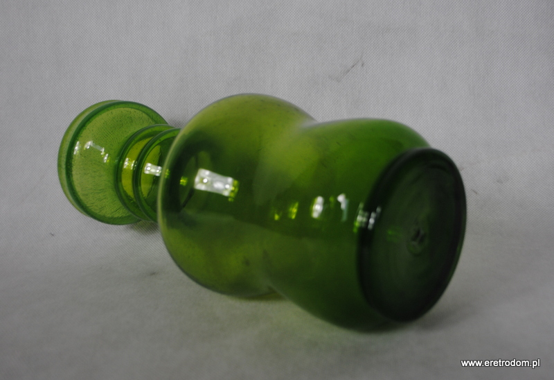 Butla autorstwa Stefana Sadowskiego dla Huty Szkła Sudety. Szkło sodowe, antico, barwione w masie na zielony kolor.