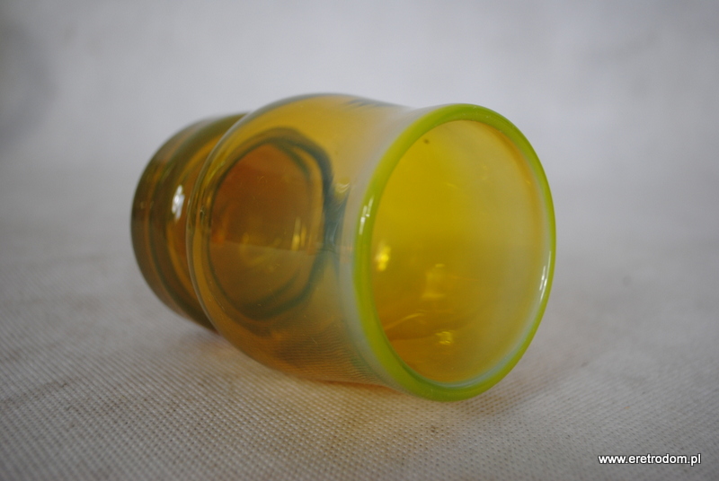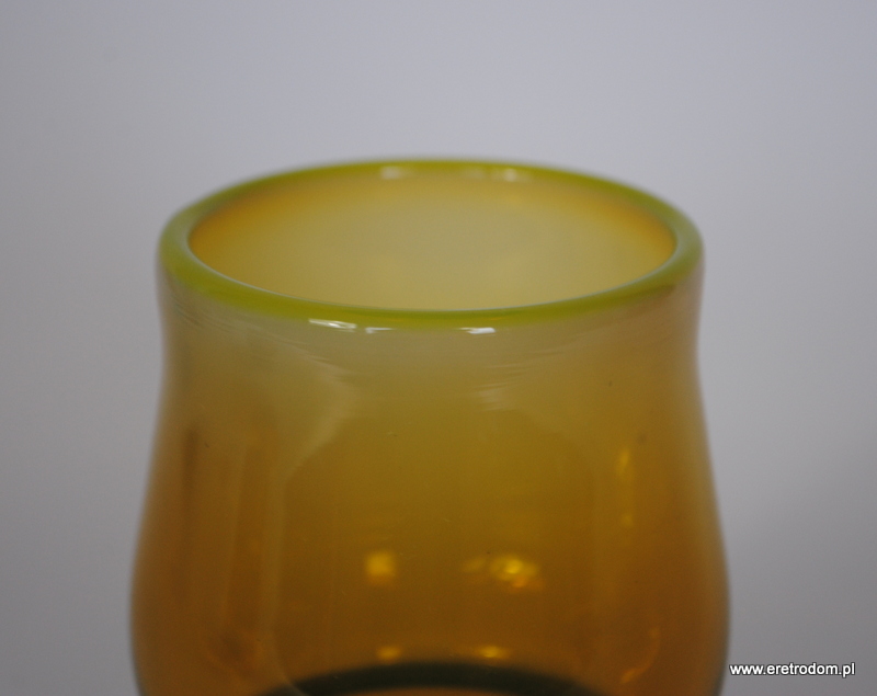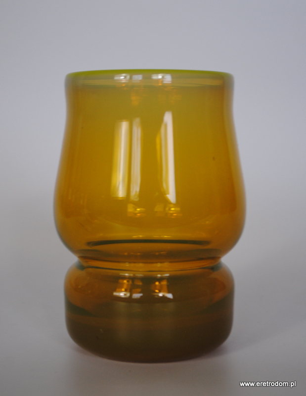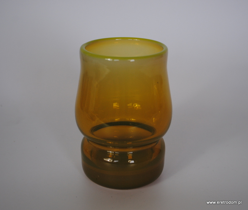 Szklanka zaprojektowana przez Stefana Sadowskiego i wyprodukowana przez Hutę Szkła Sudety w Szczytnej. Szkło sodowe barwione w masie ,rant w ładnym żółtawym odcieniu.