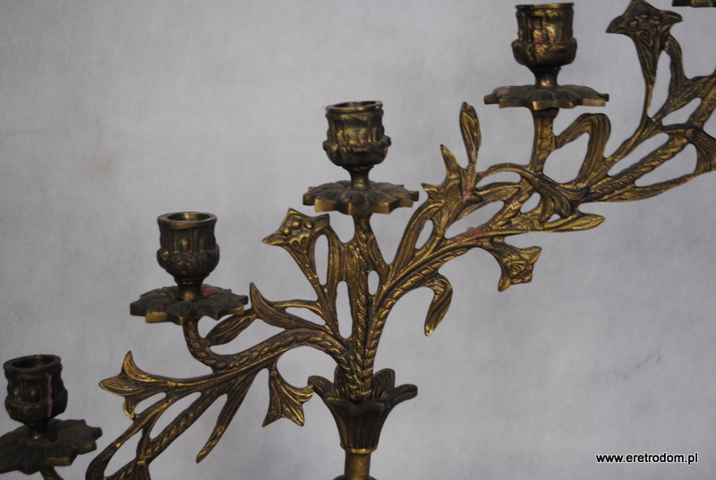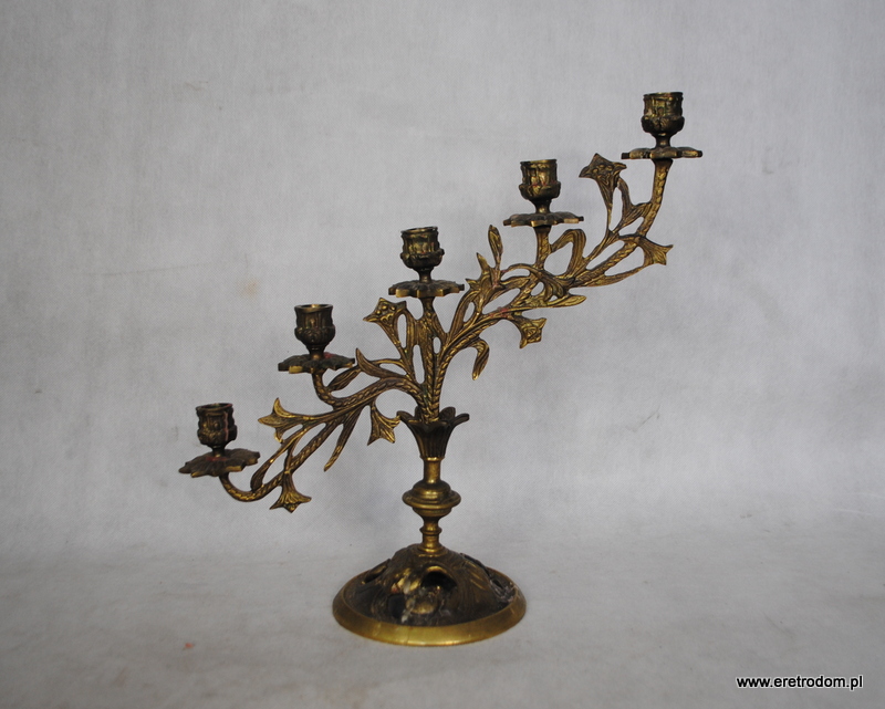 Strojny świecznik wykonany z mosiądzu. Na 5 świec.
