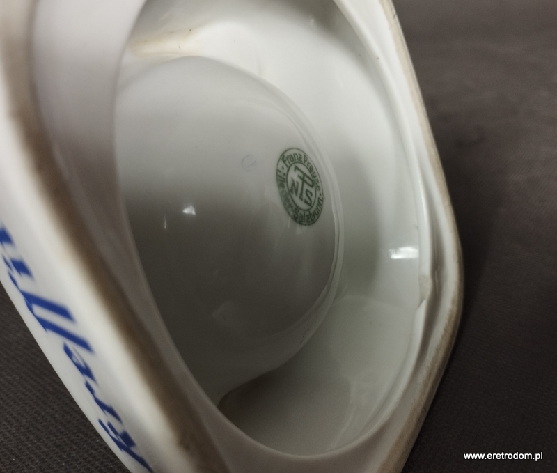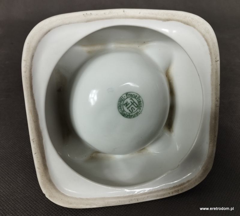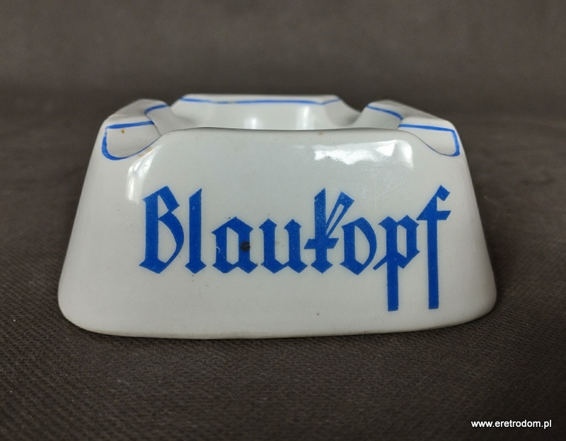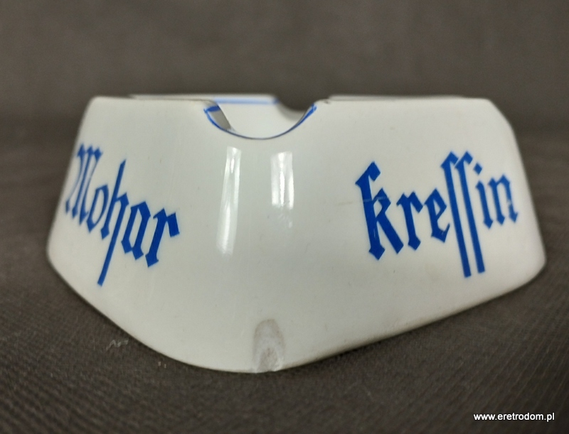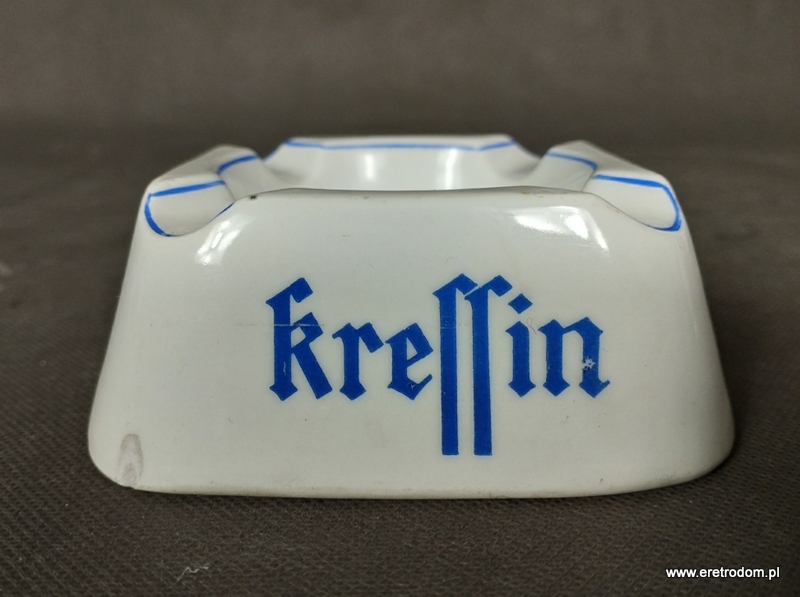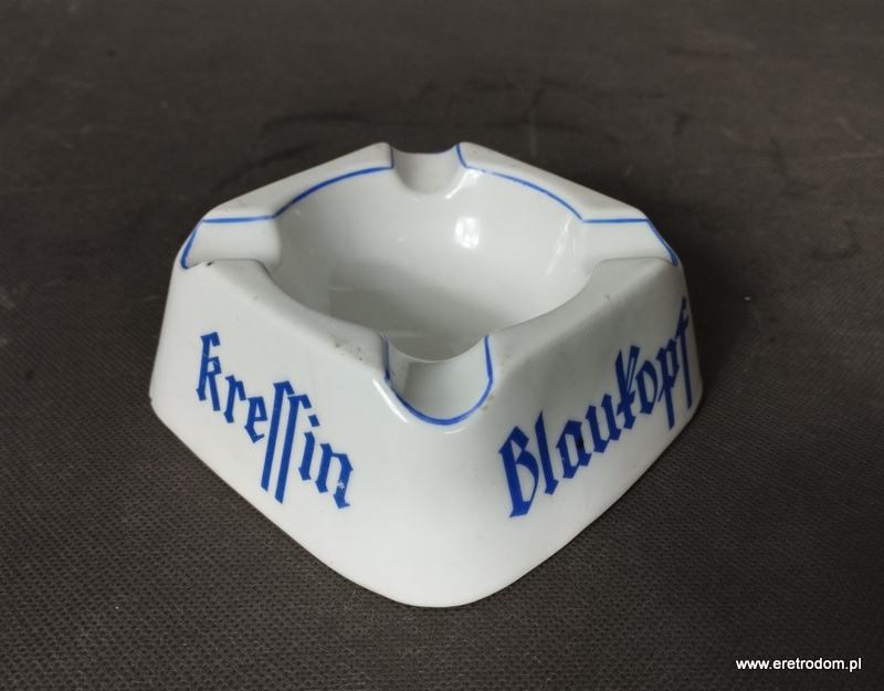 Popielniczka reklamowa wyprodukowana w fabryce w Szczawienku Prause ( 1919-1933). Biała dość gruba porcelana ozdobiona reklamowymi napisami.