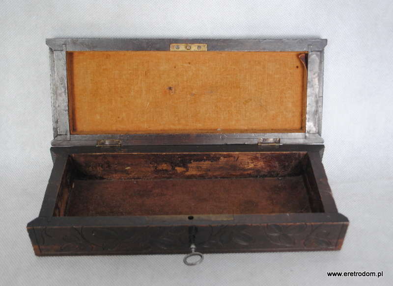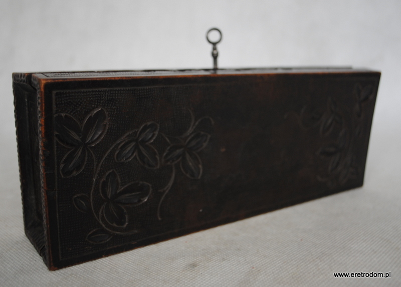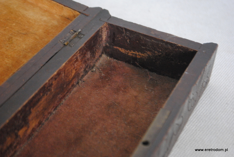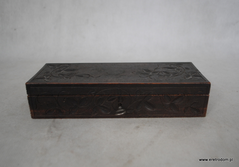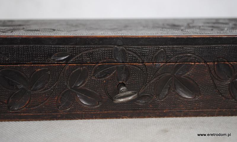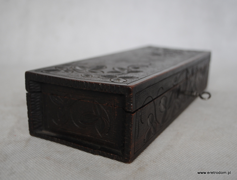 Urocza drewniana szkatułka, pudełko na biżuterię czy szpargał. Wykonana z drewna, ręcznie rzeźbiona. Zamykana na kluczyk.