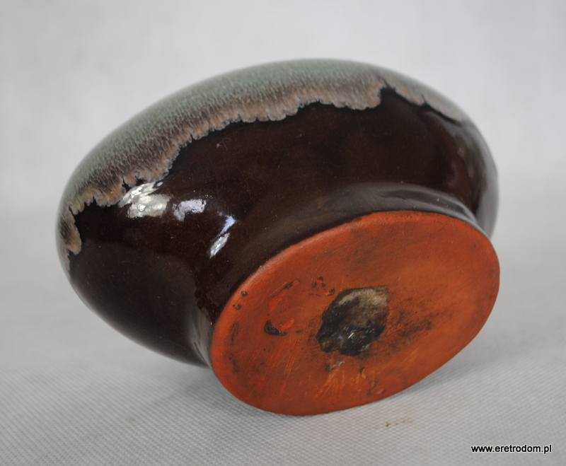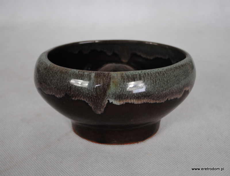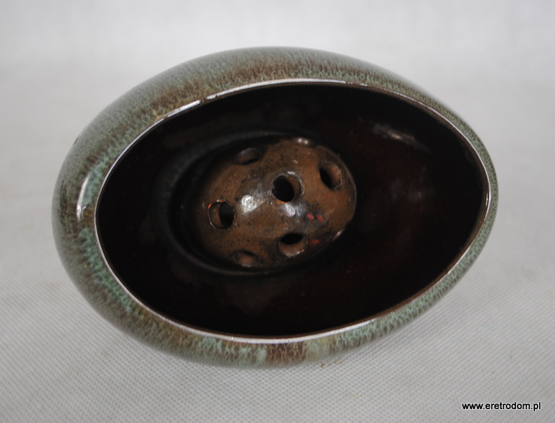 Naczynie do układania ikebany, produkcja Sztuka Kujawska Włocławek. Ceramika ładnie szkliwiona naciekowo.