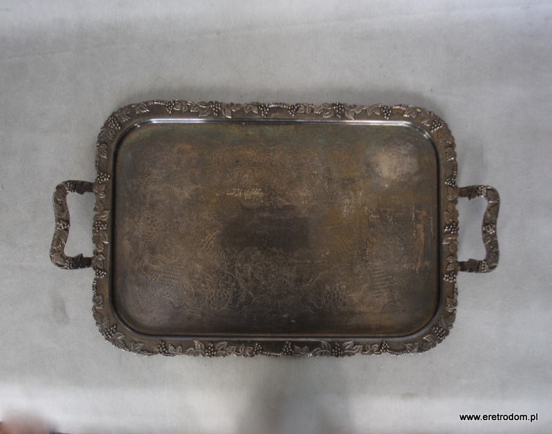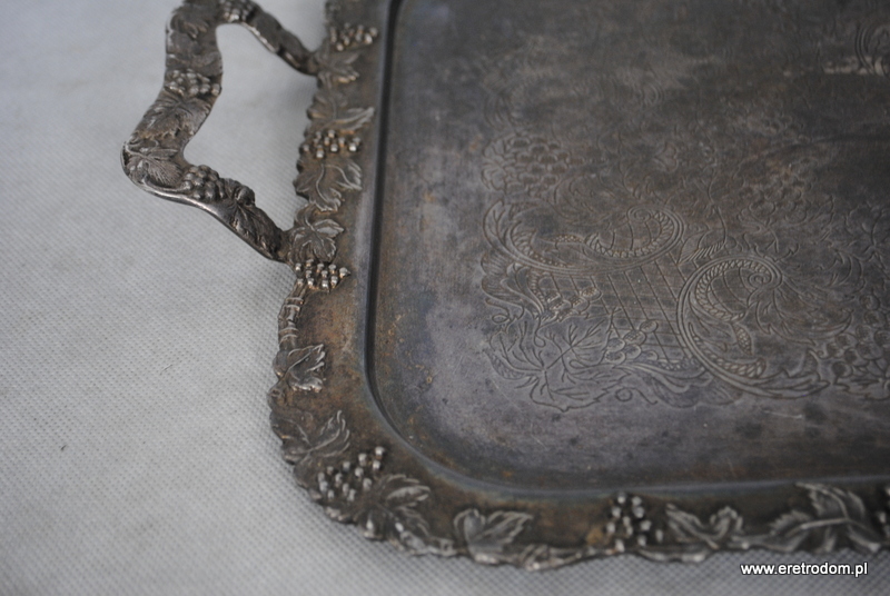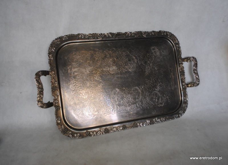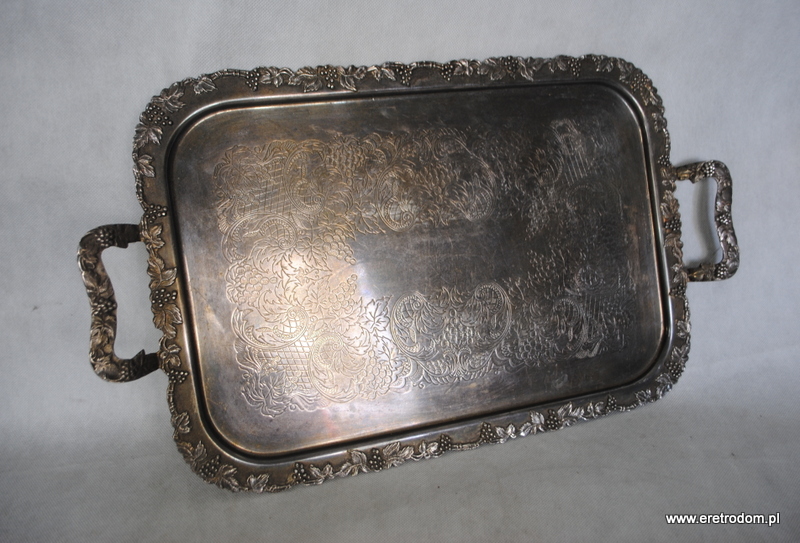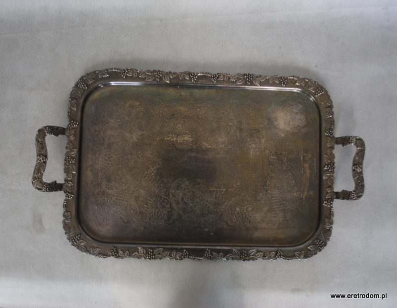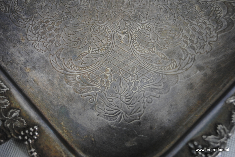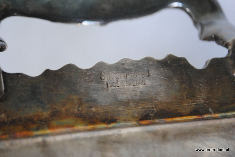 Taca wyprodukowana w Szwecji. Bogato zdobiona zarówno na lustrze jak i na rantach i uszach. Platerowana srebrem.