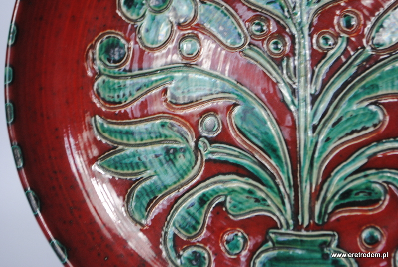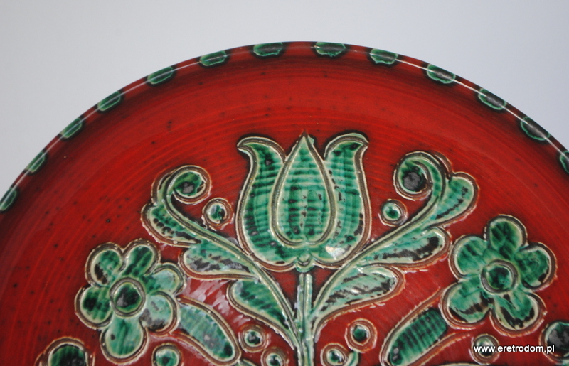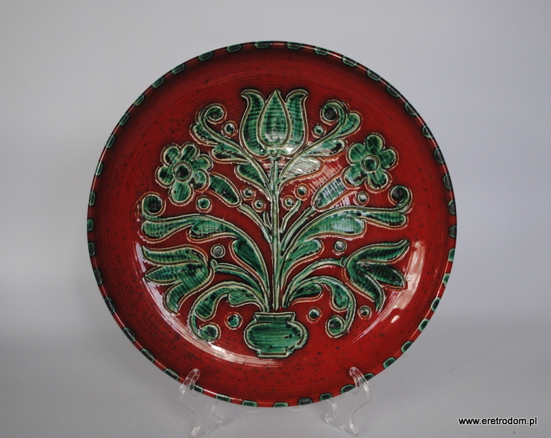 Patera dekoracyjna. II poł. XXw. Bardzo ładna kolorystyka. W tylnej części sygnatura „J29”.