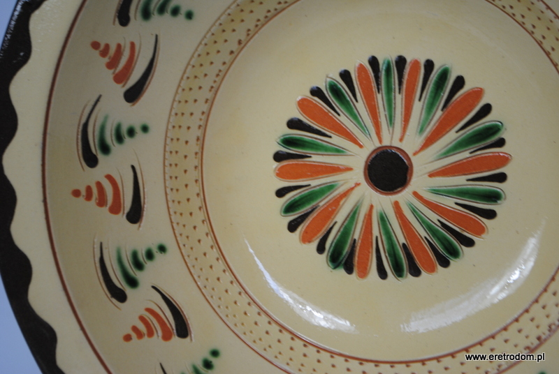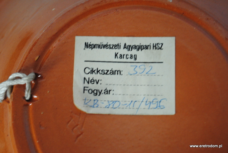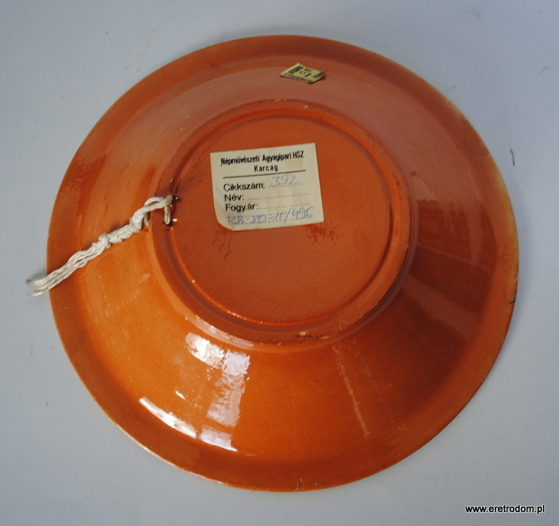 Patera, misa dekoracyjna. Węgry, Karcag, II poł. XXw. Ceramika szkliwiona, w tylnej części naklejka producenta.