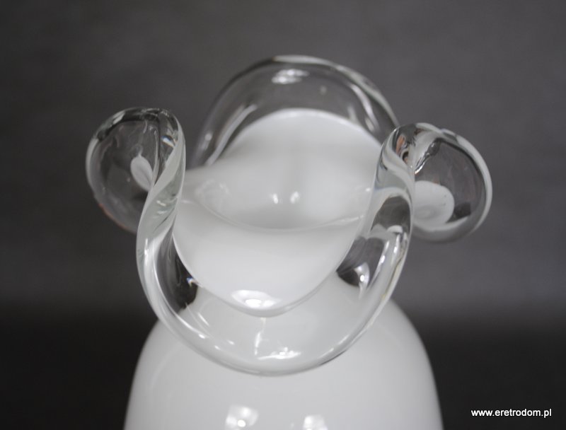 Wazon wykonany w Hucie Szkła Tarnowiec, proj. J. Słuczan-Orkusz. Szkło sodowe, barwione w masie, ręcznie formowane.
