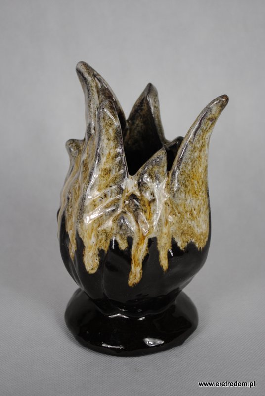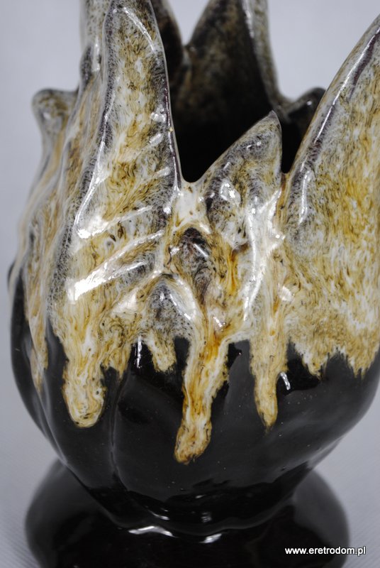 Wazon Technoplastyka Kraków. Ceramika szkliwiona o ciekawej formie. Spód malowany na czarno.