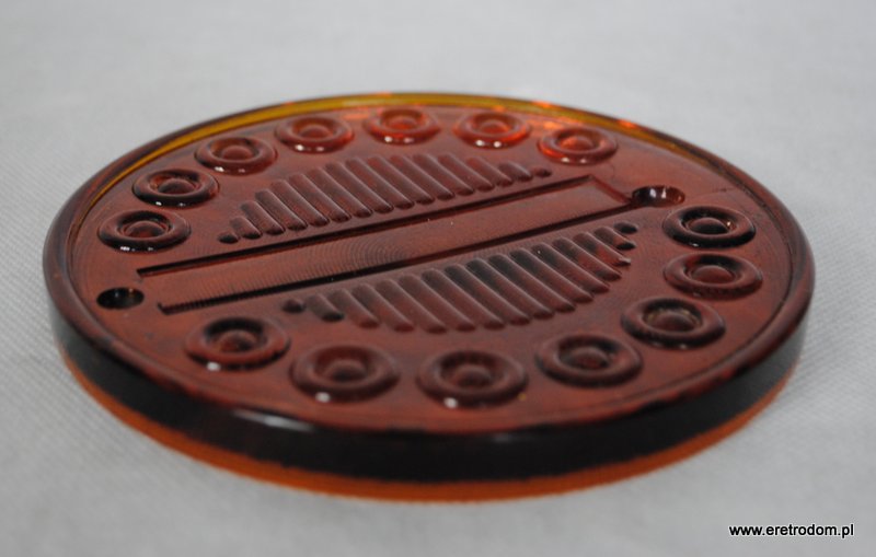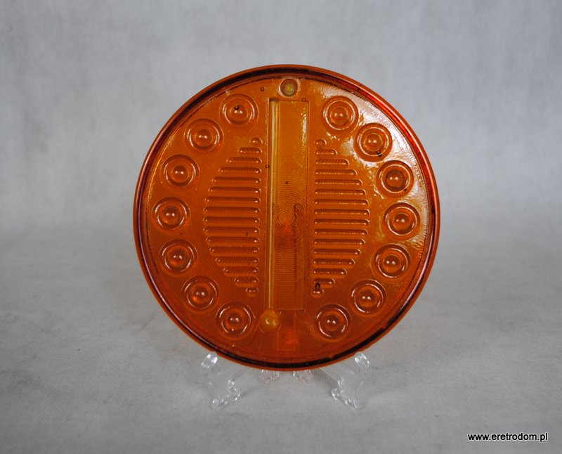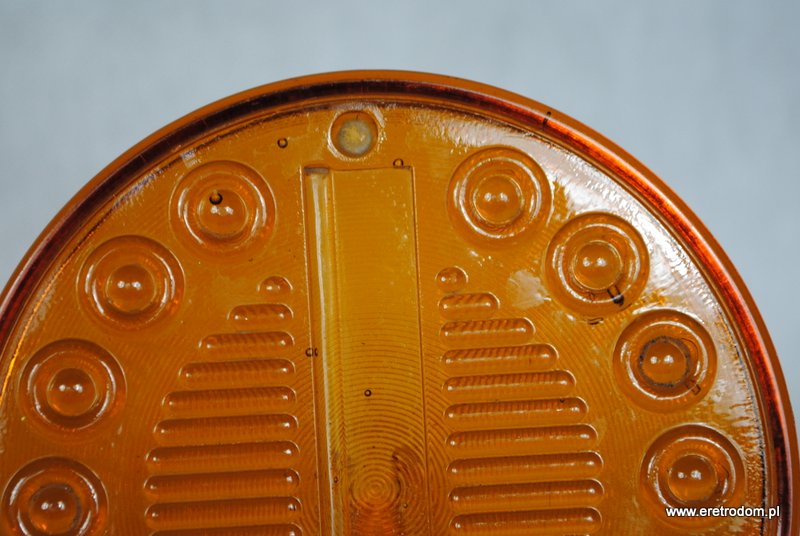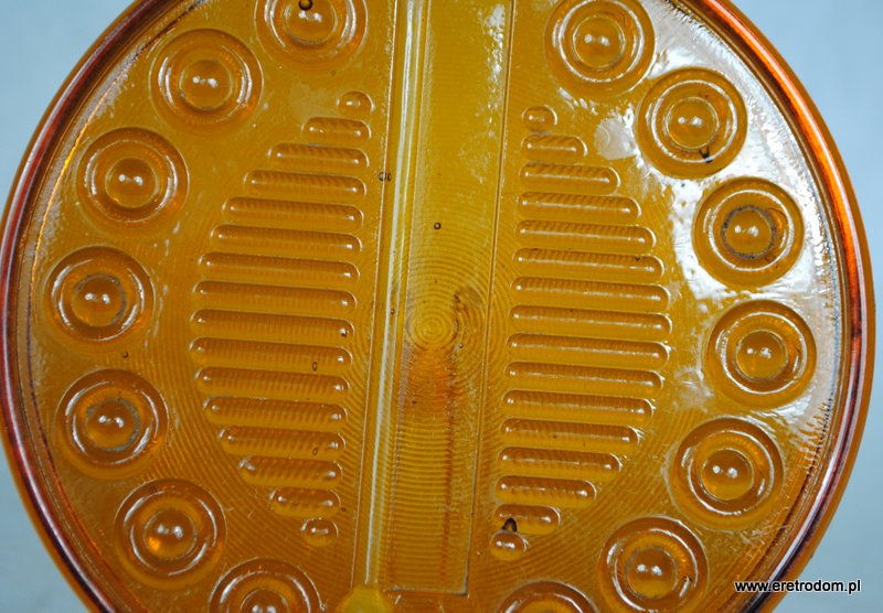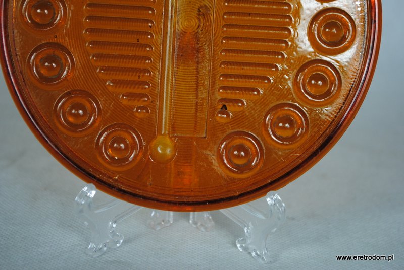 Termometr wyprodukowany w HSG Ząbkowice, zaprojektowany przez J.S Drosta. Termometr w kolorze ciemnego miodu.